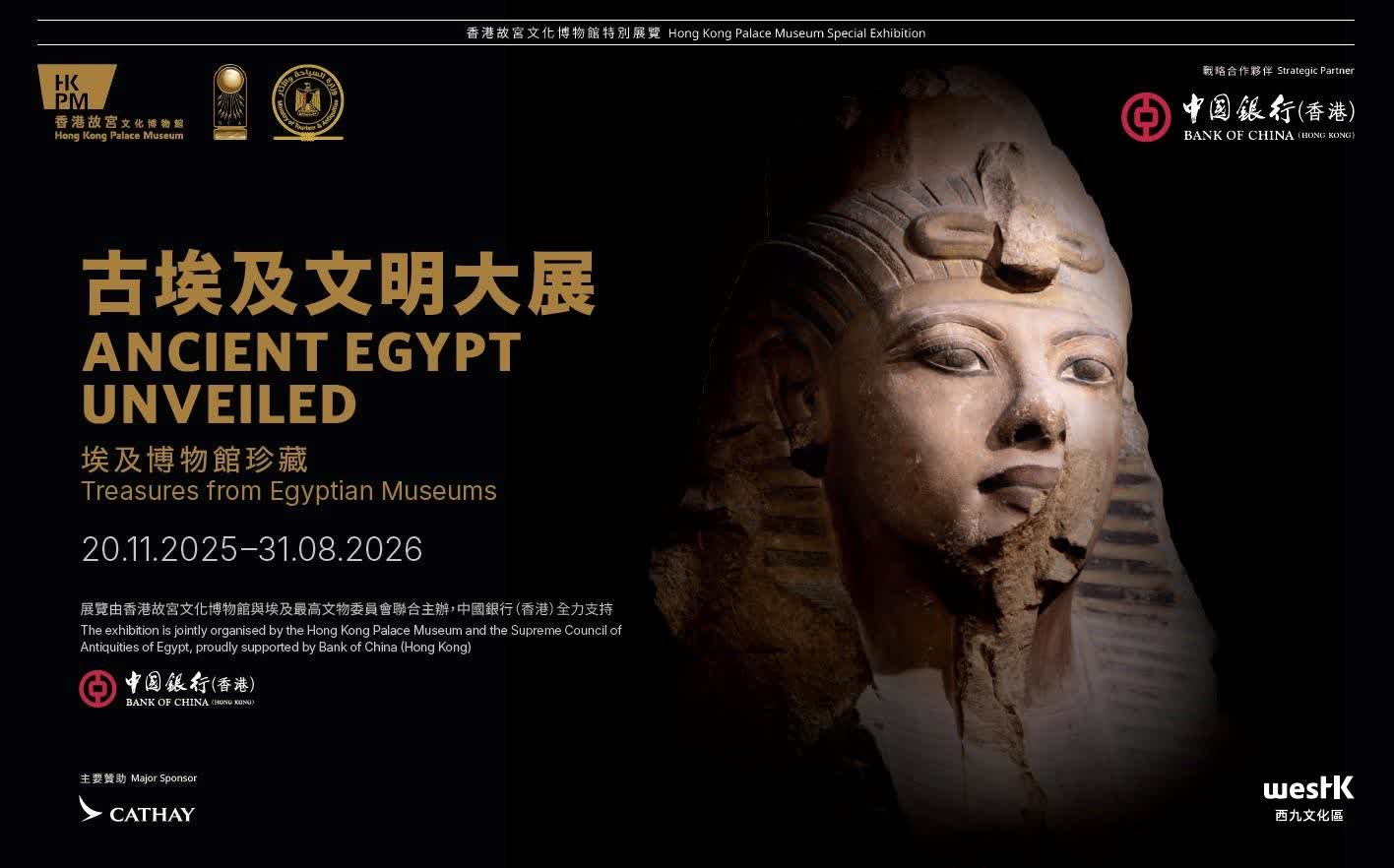 由中國銀行(香港)(中銀香港)全力支持、香港故宮文化博物館與埃及最高文物委員會聯合主辦的年度重磅特別展覽「古埃及文明大展——埃及博物館珍藏」(「古埃及文明大展」)250件珍貴文物已順利運抵香港故宮文化博物館(博物館),將於2025年11月20日至2026年8月31日於博物館展廳9盛大展出。