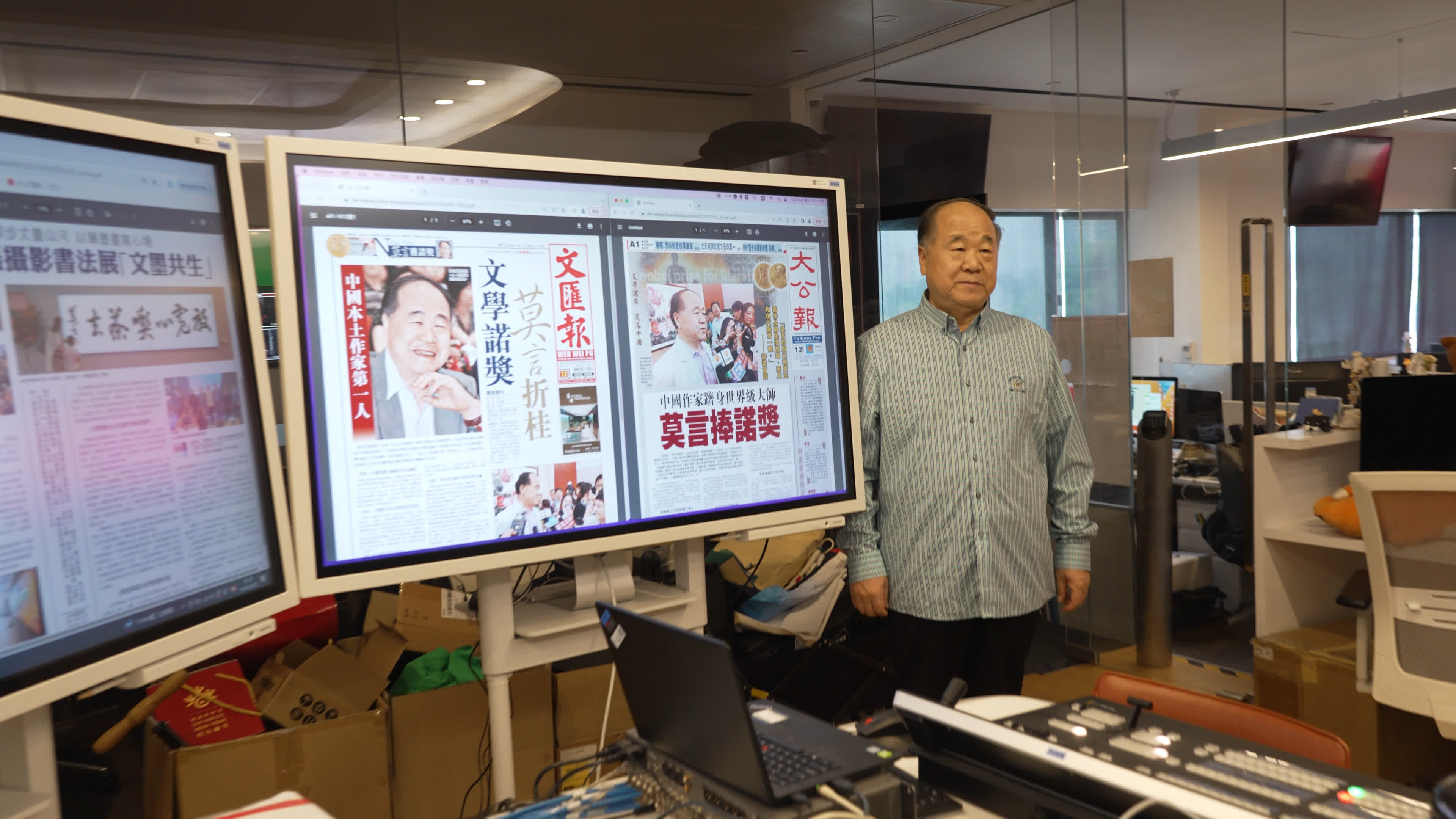 當天在參觀大文集團的報史館時,莫言不時拿起手機拍下感興趣的歷史版面。事實上,大公報、文匯報也曾出現過不少「報人」,諸如蕭乾、沈從文、茅盾、金庸,後來走上了文學創作之路,成為著名作家。在莫言看來,「報人」和「作家」之間存有共通之處,「報人從事新聞工作跟文學寫作之間,應該是沒有一個不可逾越的障礙的。」他續說,「就像我以前在《檢察日報》,也有很多記者既能寫很好的社論、通訊,也能寫很好的詩歌、散文。」