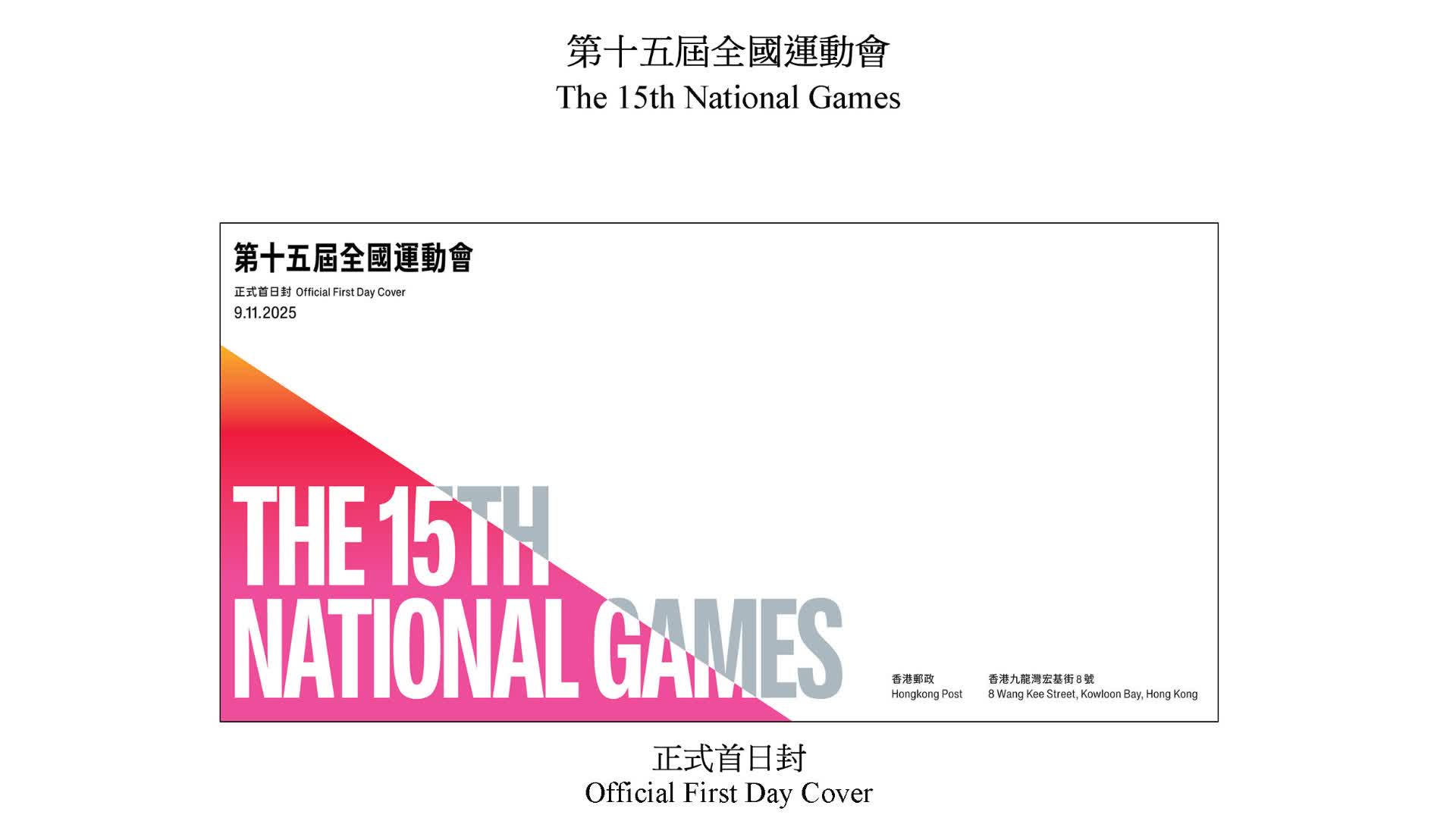 第十五屆全運會將於11月9日至21日舉行,由廣東、香港和澳門三地共同承辦,更是香港首次參與承辦的全運會。香港將承辦8個競賽項目,包括籃球(男子22歲以下組)、場地自行車、擊劍、高爾夫球、手球(男子)、七人制橄欖球、鐵人三項及沙灘排球,以及一個群眾賽事活動,即保齡球。香港郵政將發行「第十五屆全國運動會」特別郵票及相關郵品,與全民共迎這項國家盛事。