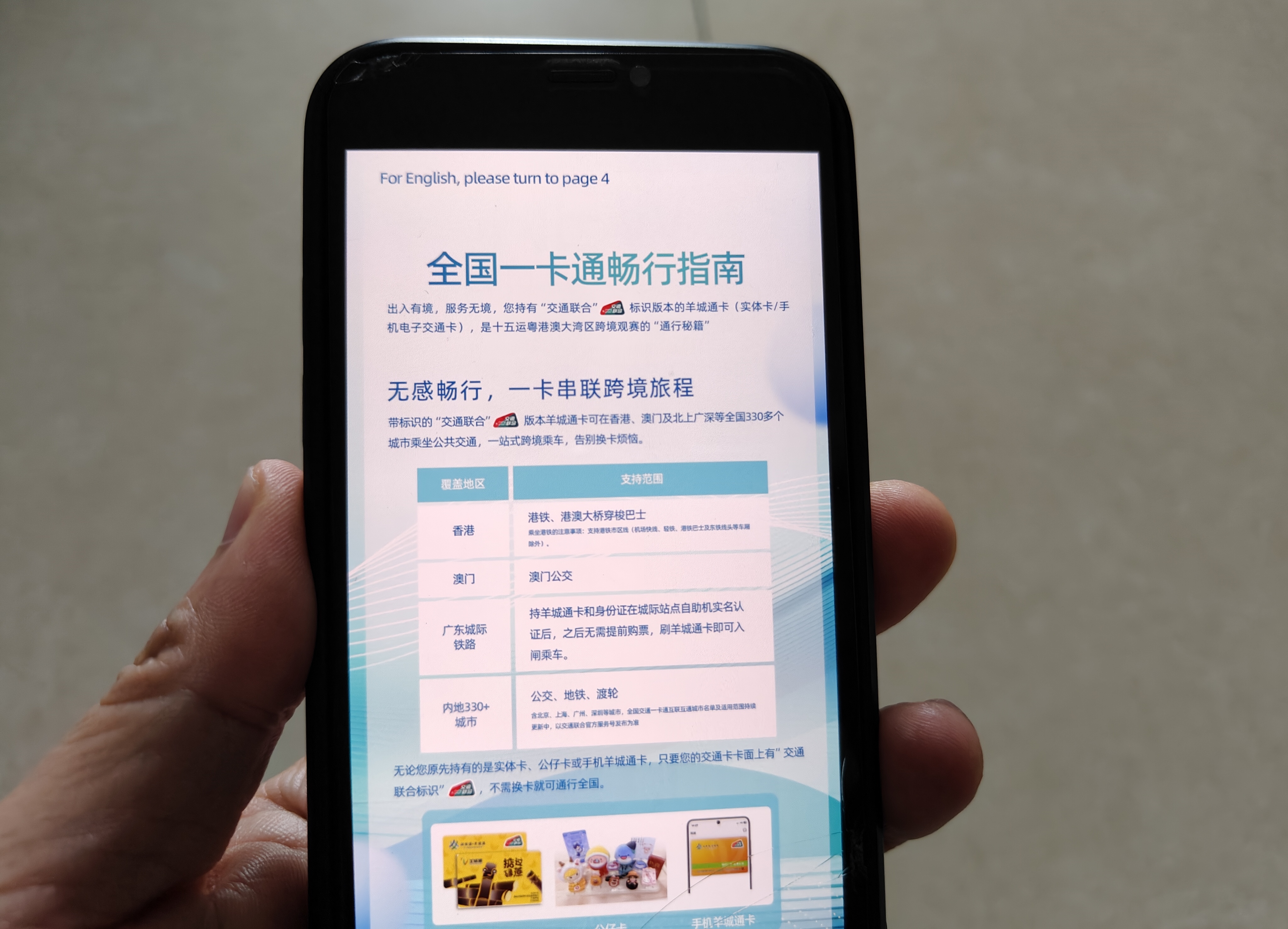 「《全國一卡通暢行指南》雙語手冊詳細介紹了全國交通一卡通的核心功能、使用場景和充值指引。」廣州羊城通有限公司有關負責人表示,境內外旅客持含有「交通聯合」標識的羊城通卡,即可在全國包括北京、上海、深圳等在內的330多個城市乘坐公交、地鐵等公共交通工具。該卡同時支持在香港港鐵、澳門公交及廣東城際鐵路上使用,覆蓋大灣區核心出行場景,精準響應了十五運會期間大流量、跨賽區的出行需求,提供「一卡暢行全國」的便捷出行體驗。