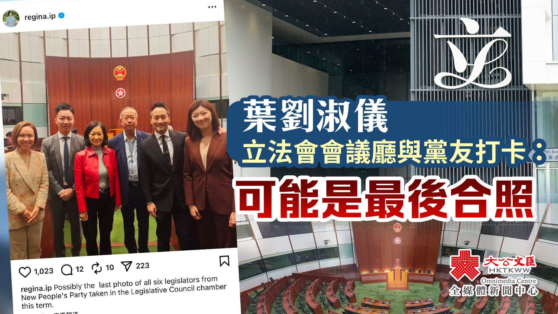 大公文匯全媒體報道,22名立法會議員棄選下屆立法會,新民黨主席葉劉淑儀與副主席黎棟國尚未公布決定。葉劉淑儀今日(22日)出席立法會最後一次大會時,與另外5名黨友在會議廳打卡,並在社交平台發文表示「可能是今屆新民黨在議會的最後一次合照」。