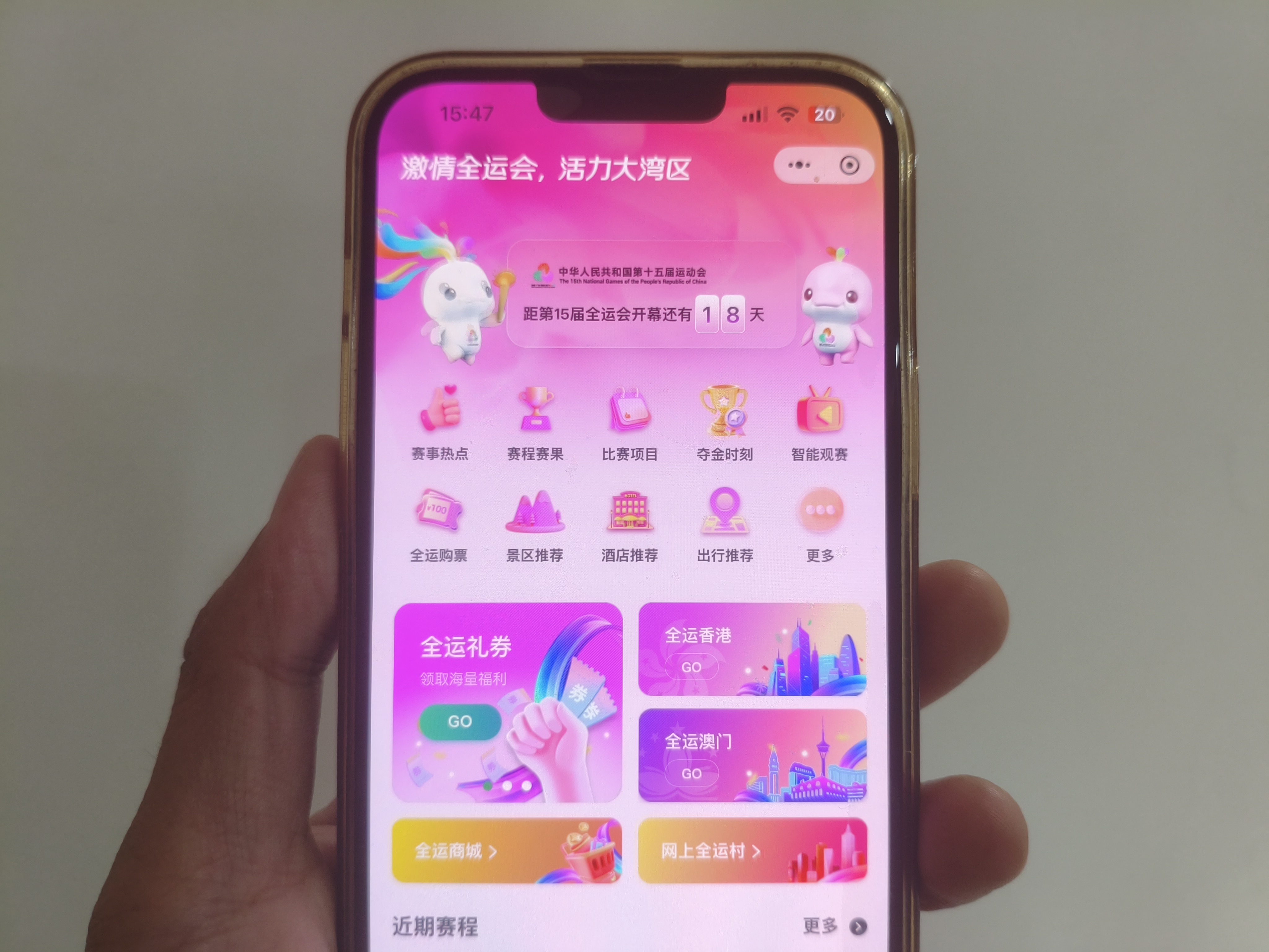 (大公文匯網 記者 敖敏輝 廣州報道)覆蓋十五運會粵港澳賽區的觀賽線上智能服務平台正式上線。近日,十五運會廣東賽區執委會、殘特奧會廣東賽區執委會正式啟用的官方綜合服務平台「粵港澳全運通」小程序。這款集賽事服務、城市導覽、互動體驗於一體的數字化工具,打通了「看比賽」和「逛灣區」的雙重需求,讓來自全國各地的觀眾、遊客,通過微信或支付寶即可輕鬆使用,實現賽事實時查、灣區觀光遊、三地服務通,暢享全運精彩與嶺南魅力。