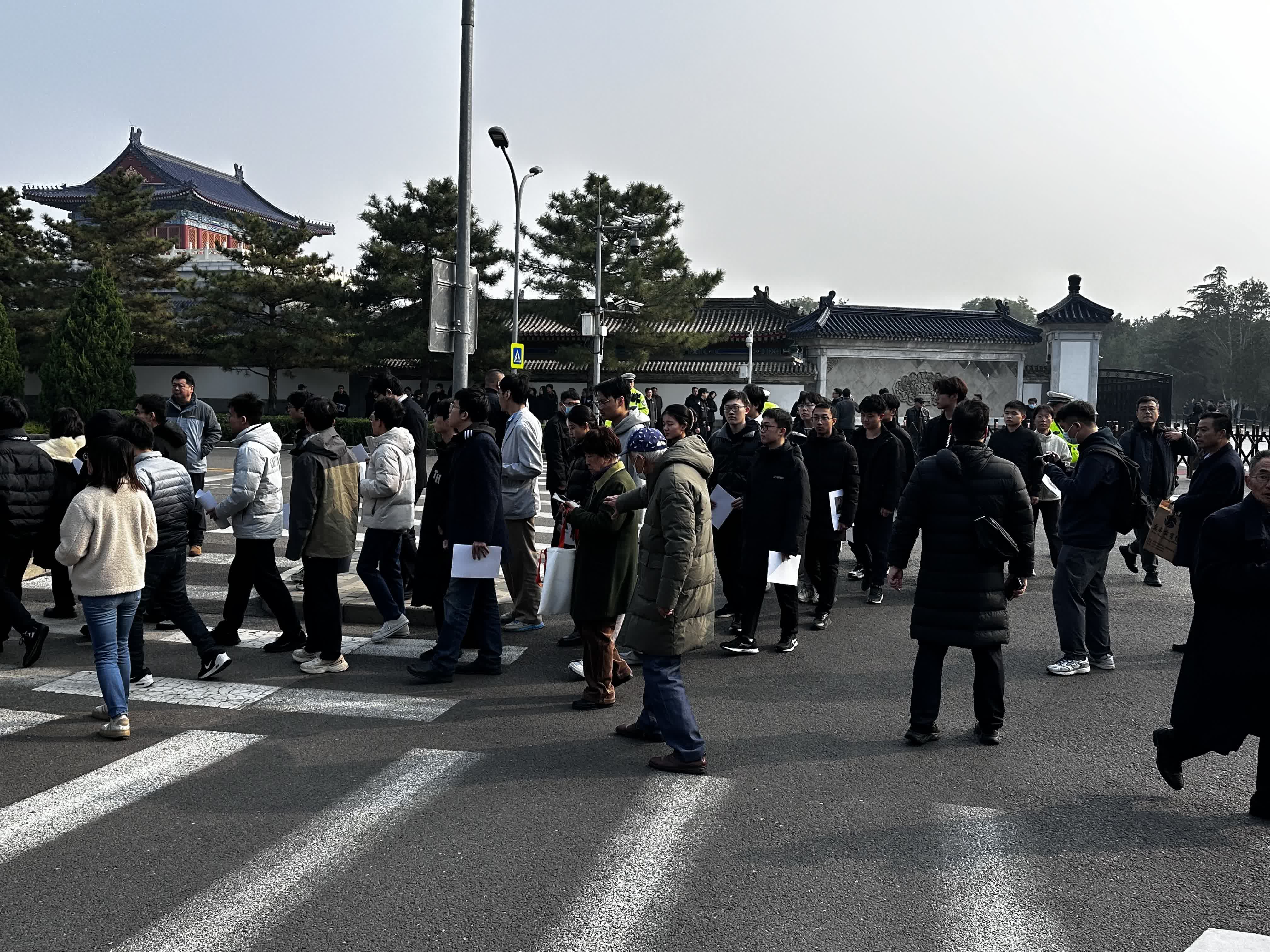 一位來自山東的醫生不到八點便手持楊振寧先生的照片等候在八寶山革命公墓大禮堂外,只為紀念活動向公眾開放後能盡早排隊入場。他告訴記者,自己坐了一夜火車,清晨剛抵達北京,便馬不停蹄趕來。「楊先生是國之大士,」他坦言,自己雖然不從事物理行業,卻打心眼裏崇敬楊先生,「他的人生成就與智慧值得我學習一生。今天能送先生最後一程,打心底裏覺得榮幸。」