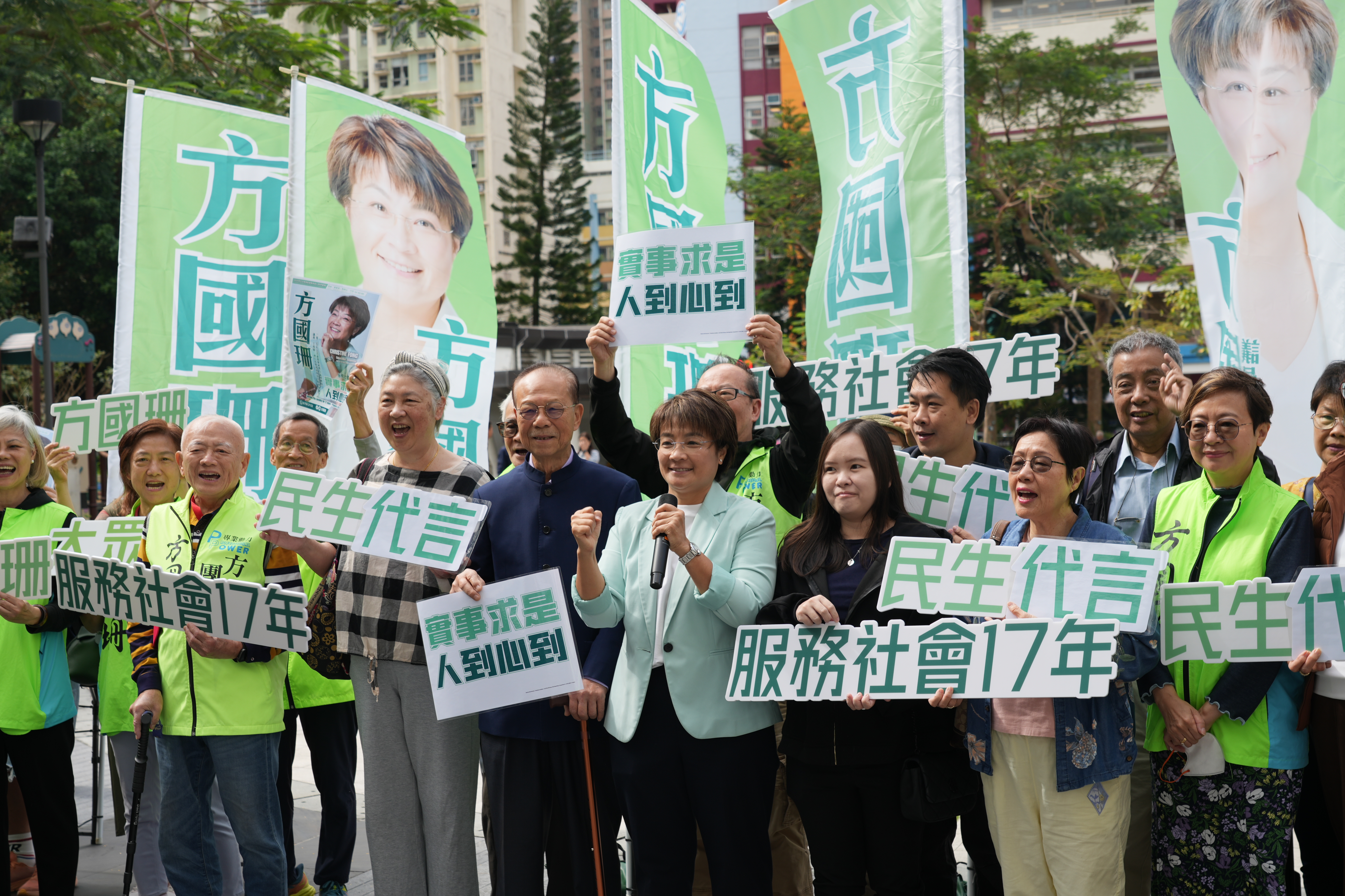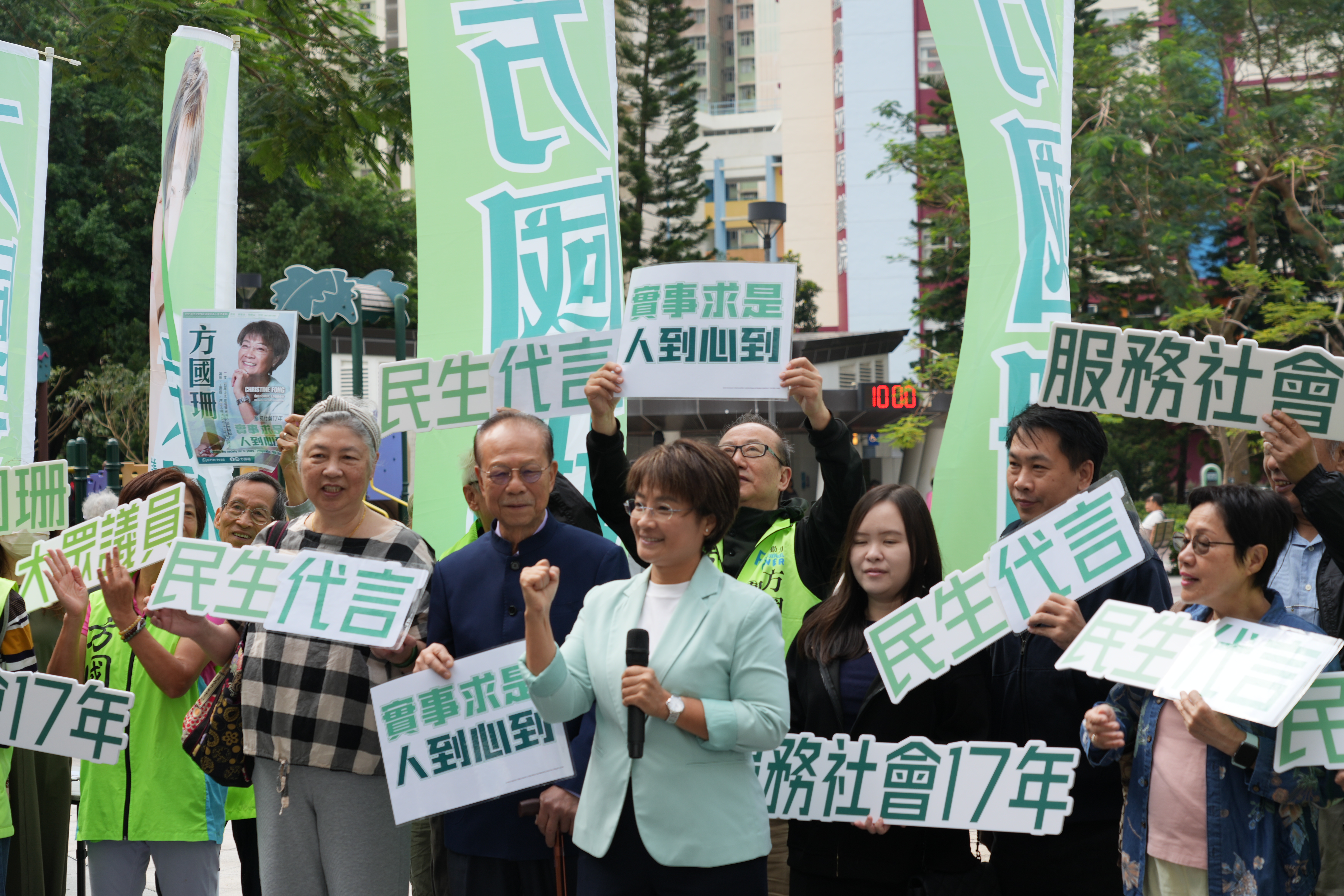 西貢區議員、智庫組織「專業動力」主席方國珊今早現身將軍澳政府大樓,宣布參選2025立法會選舉地區直選(新界東南),多名居民及支持者到場打氣,隨後方國珊進入政府大樓遞交報名表格。方國珊稱,理解市民面對房屋、就業、家庭等壓力,未來會繼續專注於社區發展,包括交通基建、社會福利及環境保護,將不遺餘力推動政策和方案,讓香港變得更加美好。