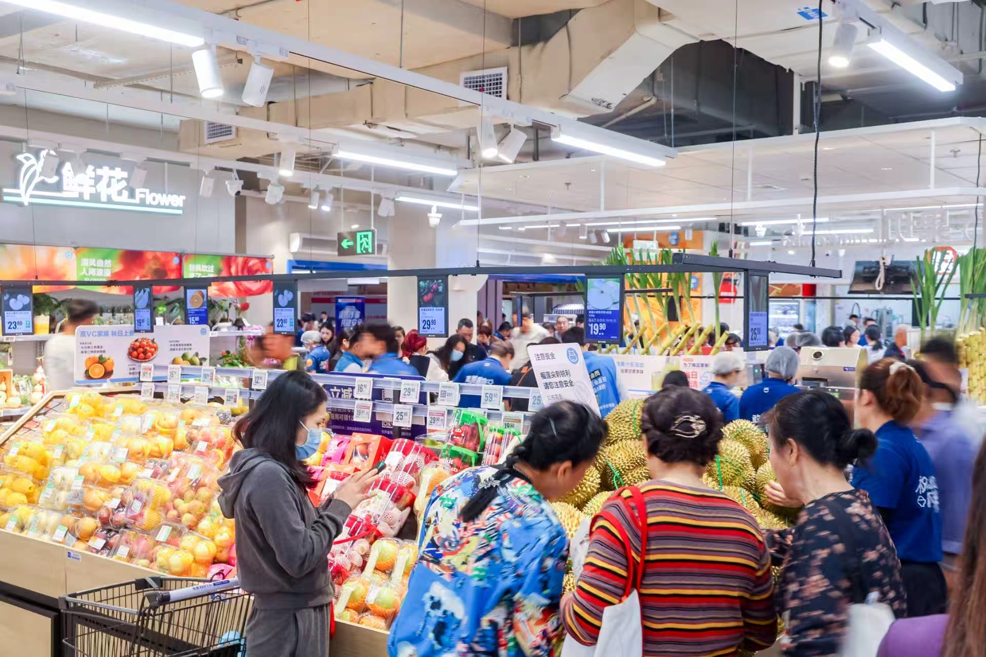 「梅林店將全面覆蓋周邊3公里範圍內的社區」,盒馬鮮生梅林店店長餘正倫介紹,新店位於梅林核心商圈的梅林安薈鄰二層,經營面積達3500平方米、商品單位超6000款,消費者線上下單,最快30分鐘就能配送到家。