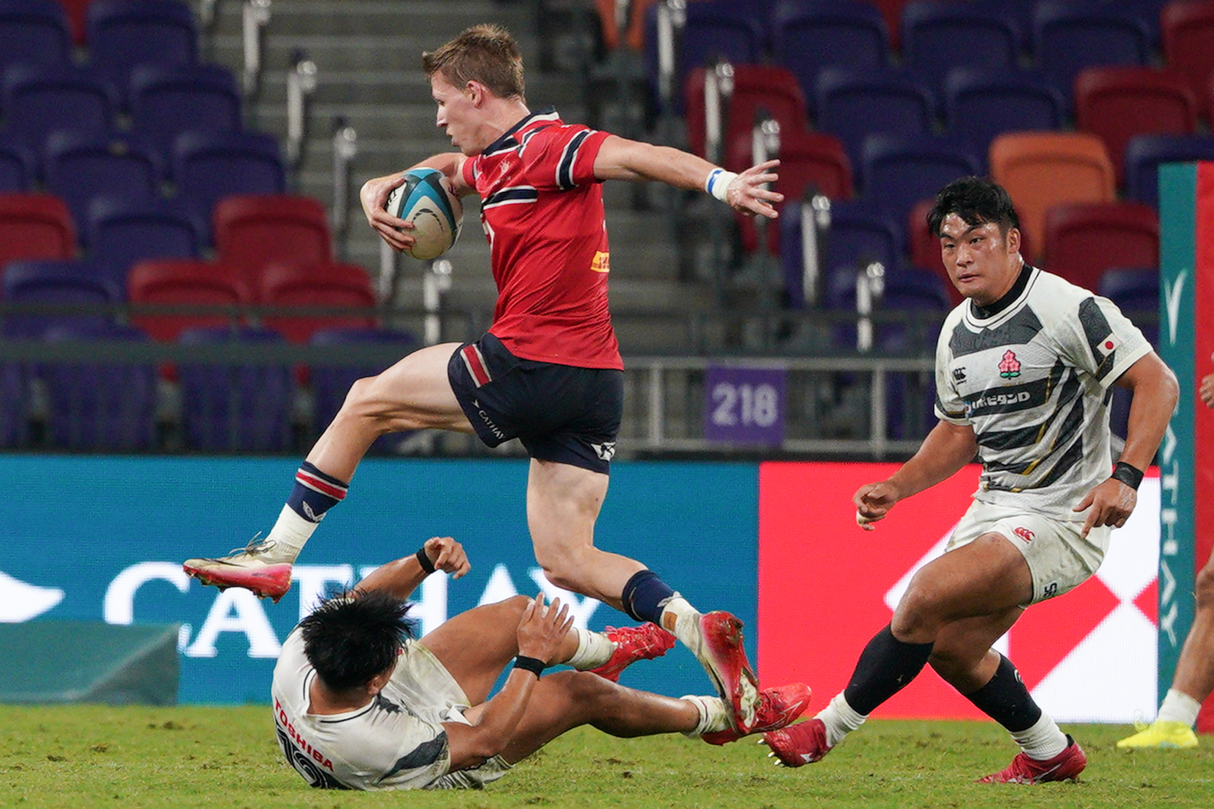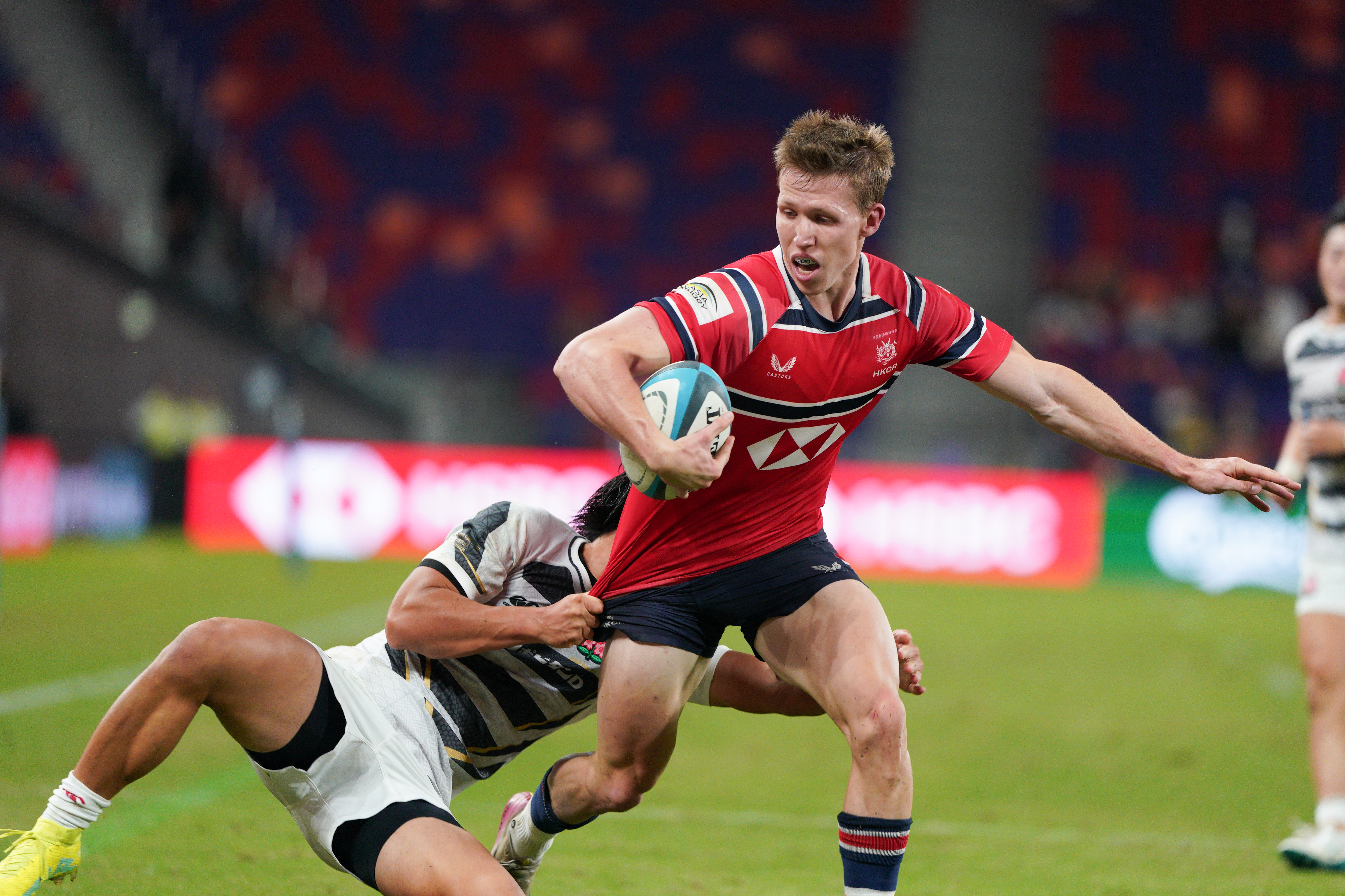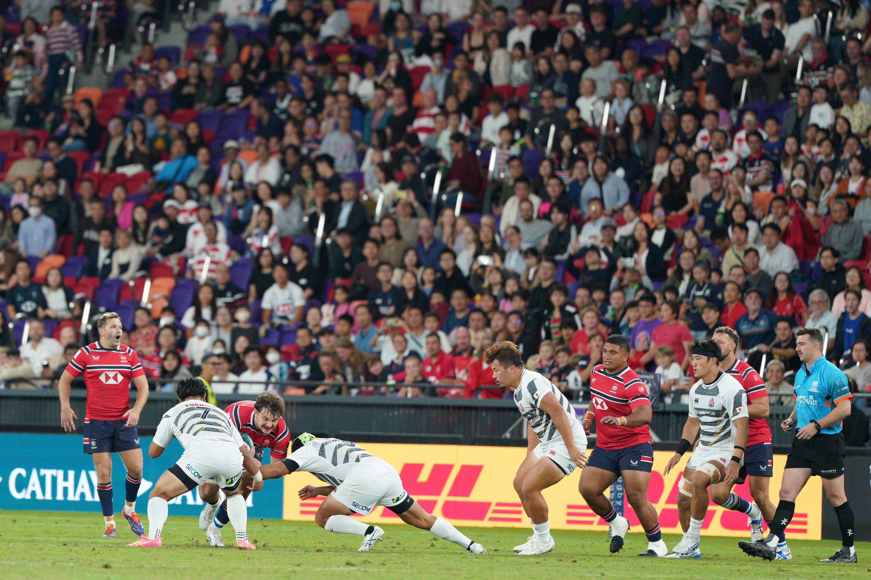 下半場時,日本隊持續施壓,將分差擴大至14比52。在第65分鐘,香港隊完成第二次達陣,將比分追近至14比52,重燃反攻希望。3分鐘後,全場響起震耳欲聾的「Hong Kong! Hong Kong!」助威聲,數千球迷的吶喊將氣氛推向高潮,可惜香港隊未能再添分數,終以14比59作結。