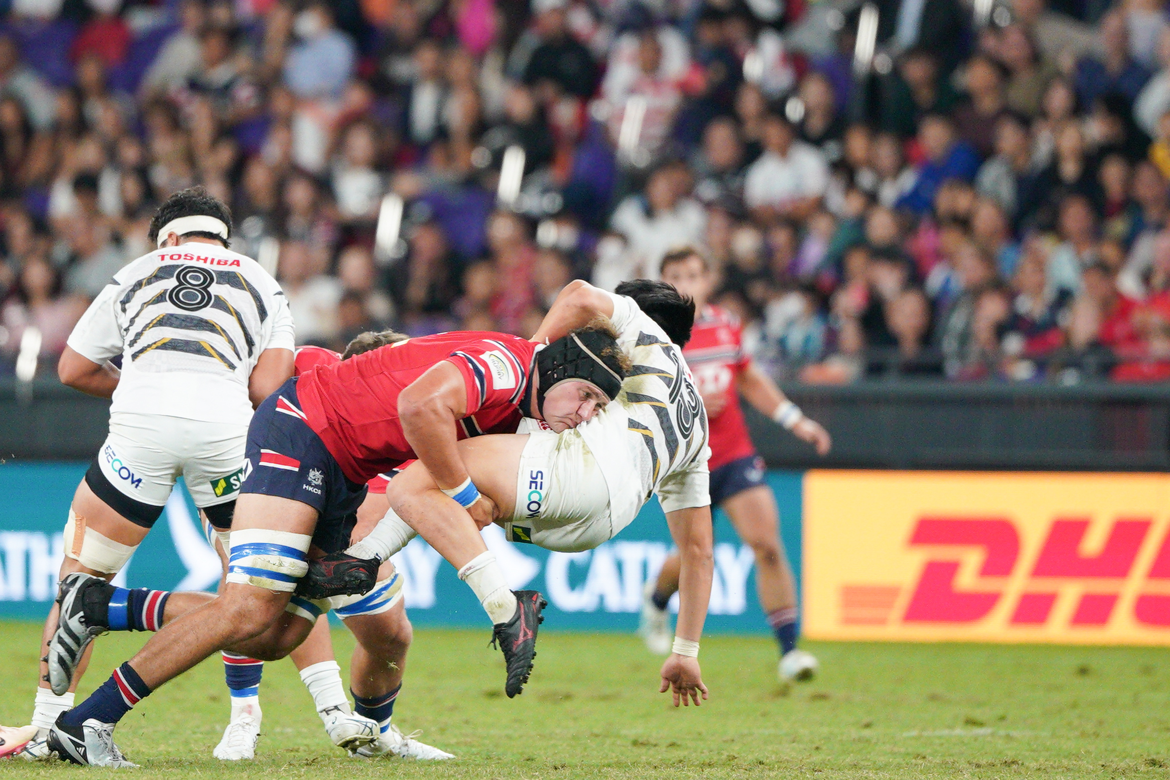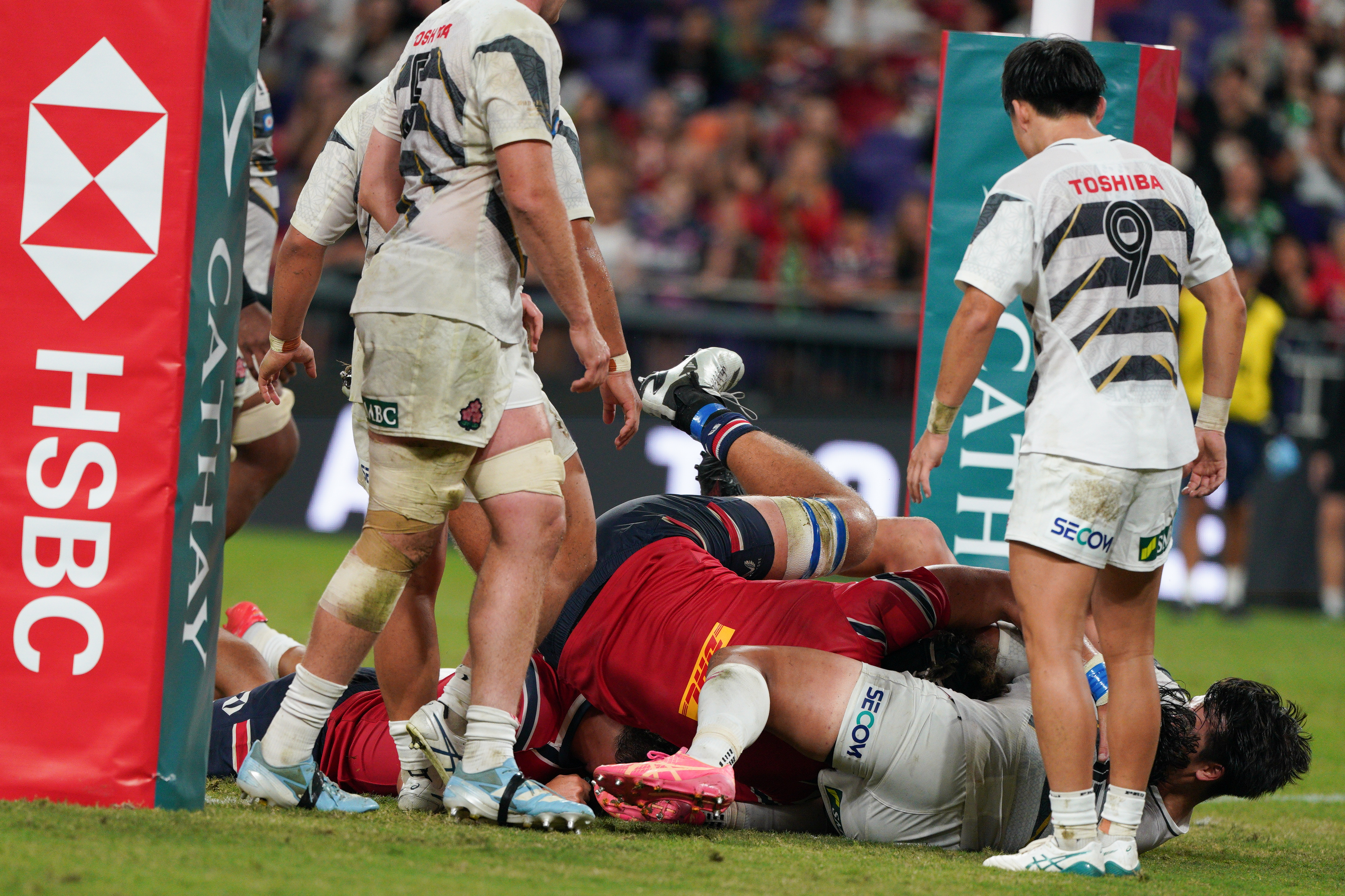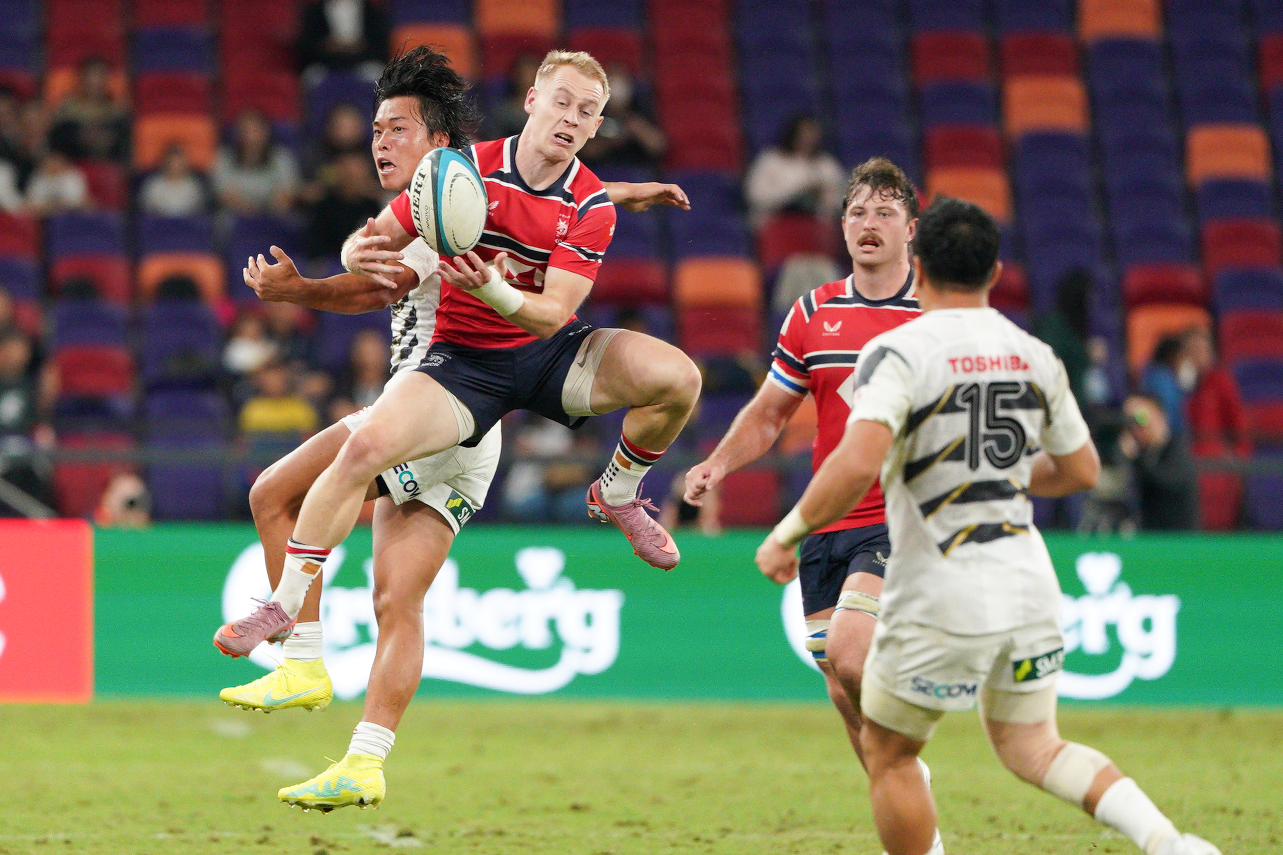下半場時,日本隊持續施壓,將分差擴大至14比52。在第65分鐘,香港隊完成第二次達陣,將比分追近至14比52,重燃反攻希望。3分鐘後,全場響起震耳欲聾的「Hong Kong! Hong Kong!」助威聲,數千球迷的吶喊將氣氛推向高潮,可惜香港隊未能再添分數,終以14比59作結。