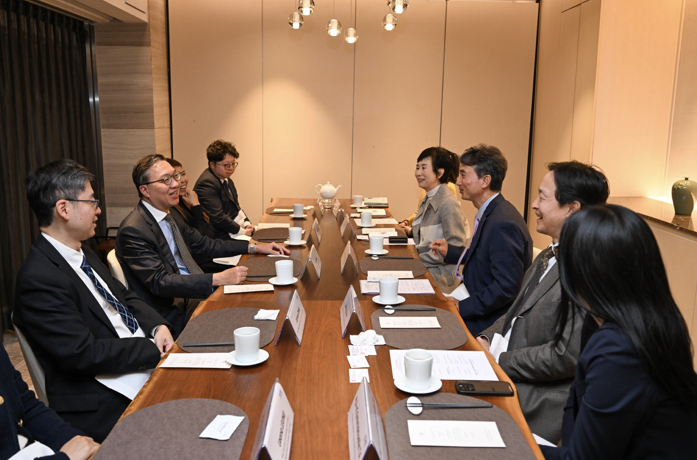 林定國上午首先到訪大韓商事仲裁院國際仲裁中心,與國際仲裁中心主席張勝和教授會面,並連同韓國國際仲裁委員會代表共進午餐。雙方討論推進香港和韓國在跨境商事爭議解決和仲裁的合作,並探討加強兩地在法律事務上的交流合作。