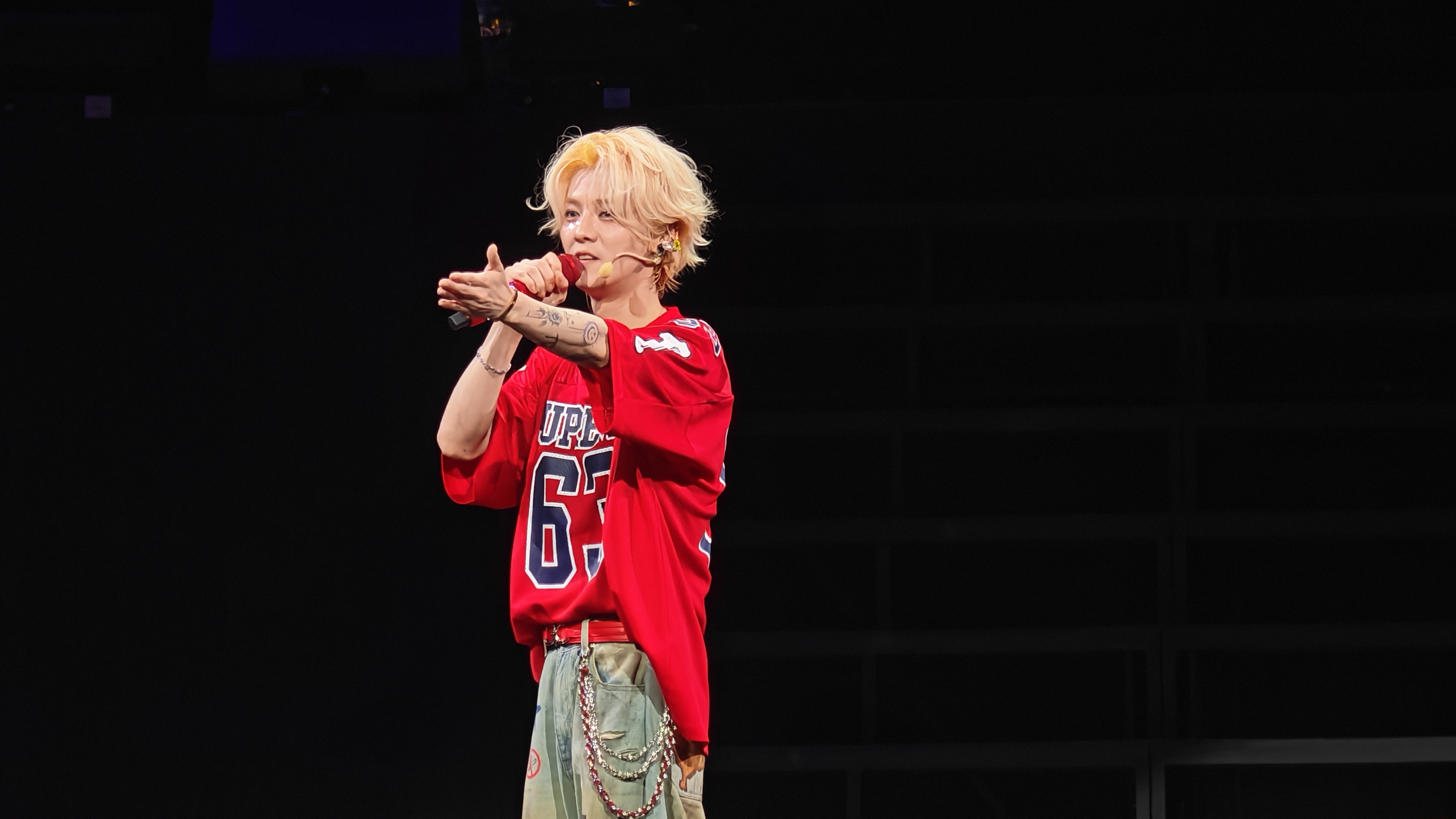 鹿晗以一身醒目的63號紅色球衣帥氣亮相,一登場便以親切笑容與香港站粉絲打招呼,直言「很久沒有來香港了!」瞬間點燃全場情緒。他不僅頻頻與台下互動,更俏皮反問:「有誰是第一次來紅館看演唱會?」話音剛落,台下歡呼聲此起彼伏。此時鹿晗高舉右手,笑言:「我也是第一次來紅館演出!」將現場氣氛推向高潮,粉絲激動不已,整個紅館沉浸在一片沸騰的感動之中。