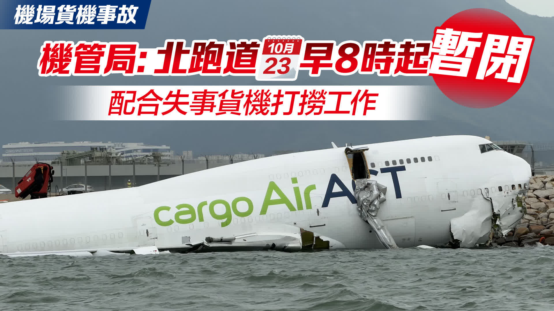 大公文匯全媒體報道,香港國際機場早前發生嚴重事故,導致地面巡邏車上2名職員殉職,為配合失事客機打撈工作,機場北跑道已於昨日(23日)起暫時關閉。兩艘內地打撈船「南天鵬」及「南天翔」今日(24日)早上停靠在貨機殘骸附近,撈起貨機其中一件部件。