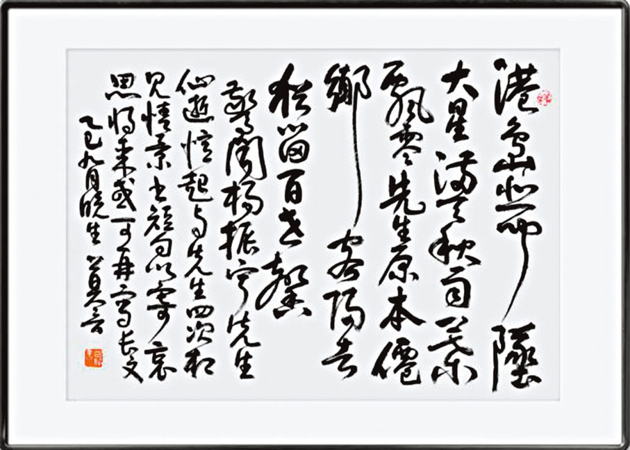 根據報道,莫言手書短詩寫道:港島悲聞墜大星,滿天秋雨葉飄零。先生原本仙鄉客,歸去猶留百世馨。落款是「晚生 莫言」。