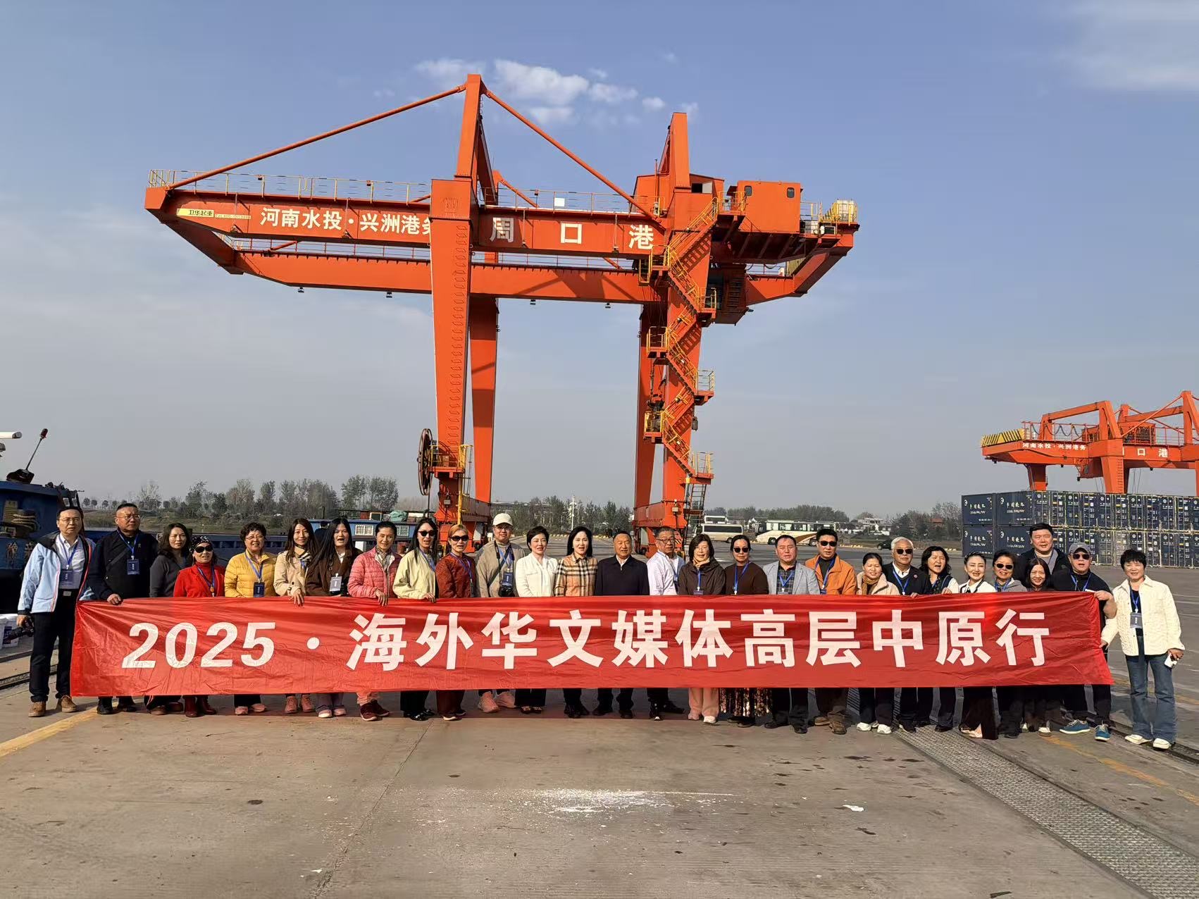 (大公文匯網 記者劉蕊、實習生張媛媛 河南報道)「今天我們看到了繁忙的周口中心港,巨輪通江達海,這裏正成為中原地區連接世界的新起點。這種『古』與『今』的強烈對比——一邊是數千年的文明聖地,一邊是現代化的億噸大港——這種時空交匯的魅力,正是『中國式現代化』最生動、最有力的故事腳本。2025年10月24日,海外華文媒體高層中原行走進周口,澳大利亞澳華電視傳媒(ACTV)創辦人、董事長任傳功的感慨,道出了30餘位海外華文媒體高層的共同心聲。此次,來自全球五大洲二十多個國家和地區的媒體人齊聚 「羲皇古都」,聚焦周口中心港的發展活力,探尋中原對外開放新路徑。