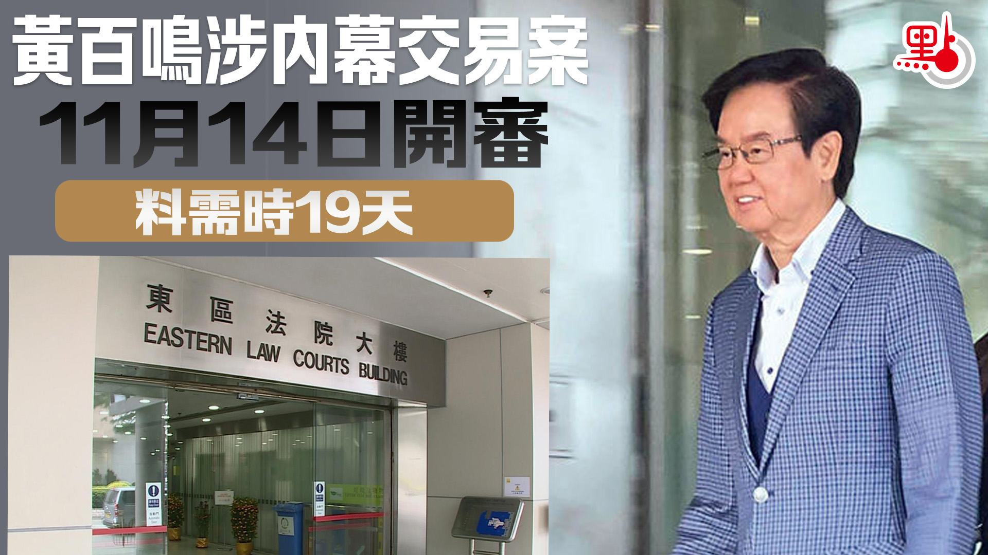 大公文匯全媒體報道,證監會早前對商人黃栢鳴(藝名黃百鳴)涉嫌於2017年8月至10月期間,慫使他人進行天馬影視的股份交易,被證監會票控一項內幕交易罪。黃栢鳴早前表明不認罪,案件昨在東區裁判法院作審前覆核,裁判官將案件訂於11月14日開審,預計審訊需時19天。黃栢鳴獲准繼續保釋候審。