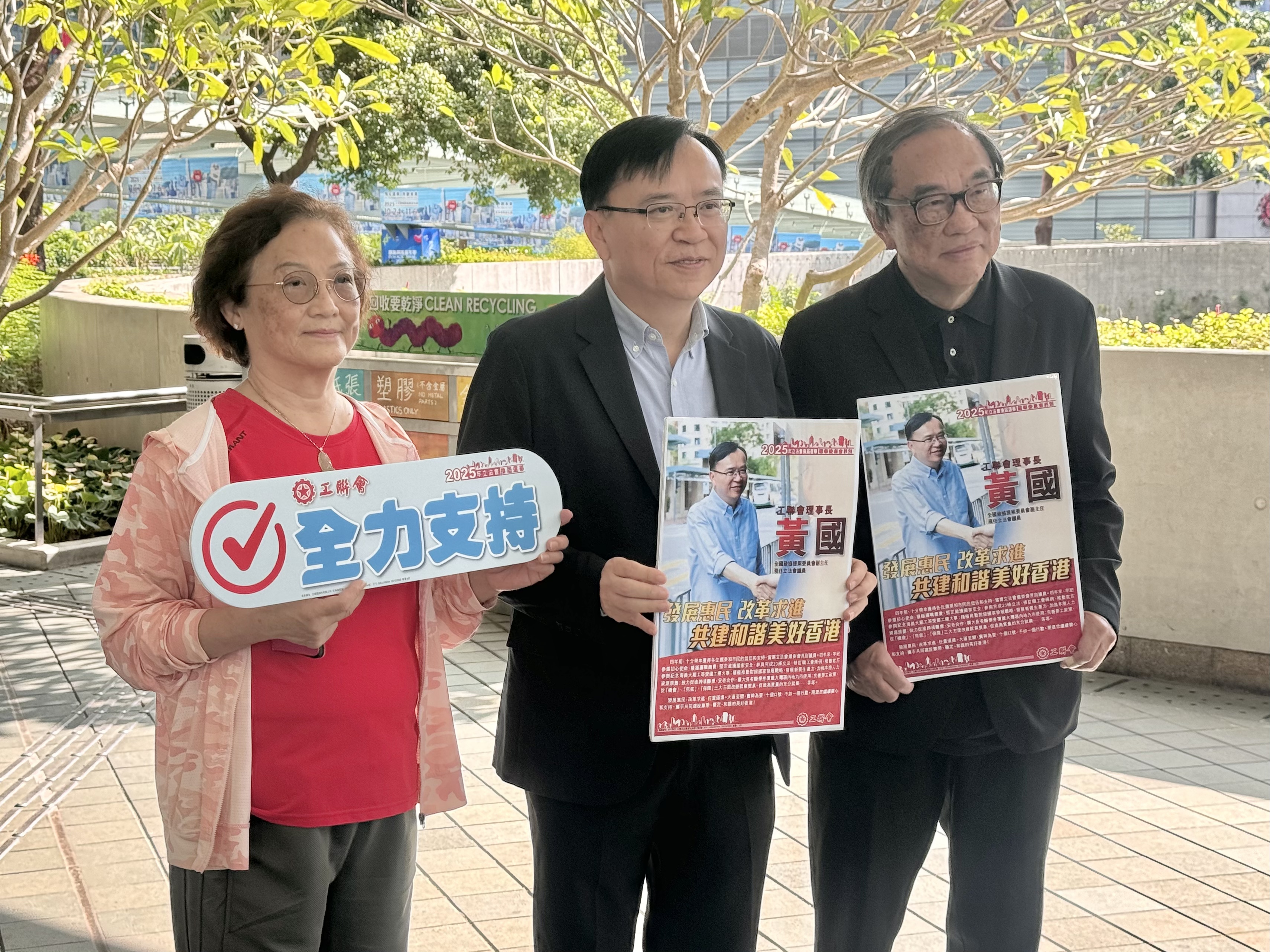 黃國指出,是次參選口號為「發展惠民 改革求進 共建和諧美好香港」,由治及興的新階段對議員提出更高要求,作為新一屆立法會的參選人,不僅要出謀獻策,還要身體力行去團結社會各界、凝聚社會力量,與特區政府共同建設一個繁榮、穩定、和諧、美好的香港。