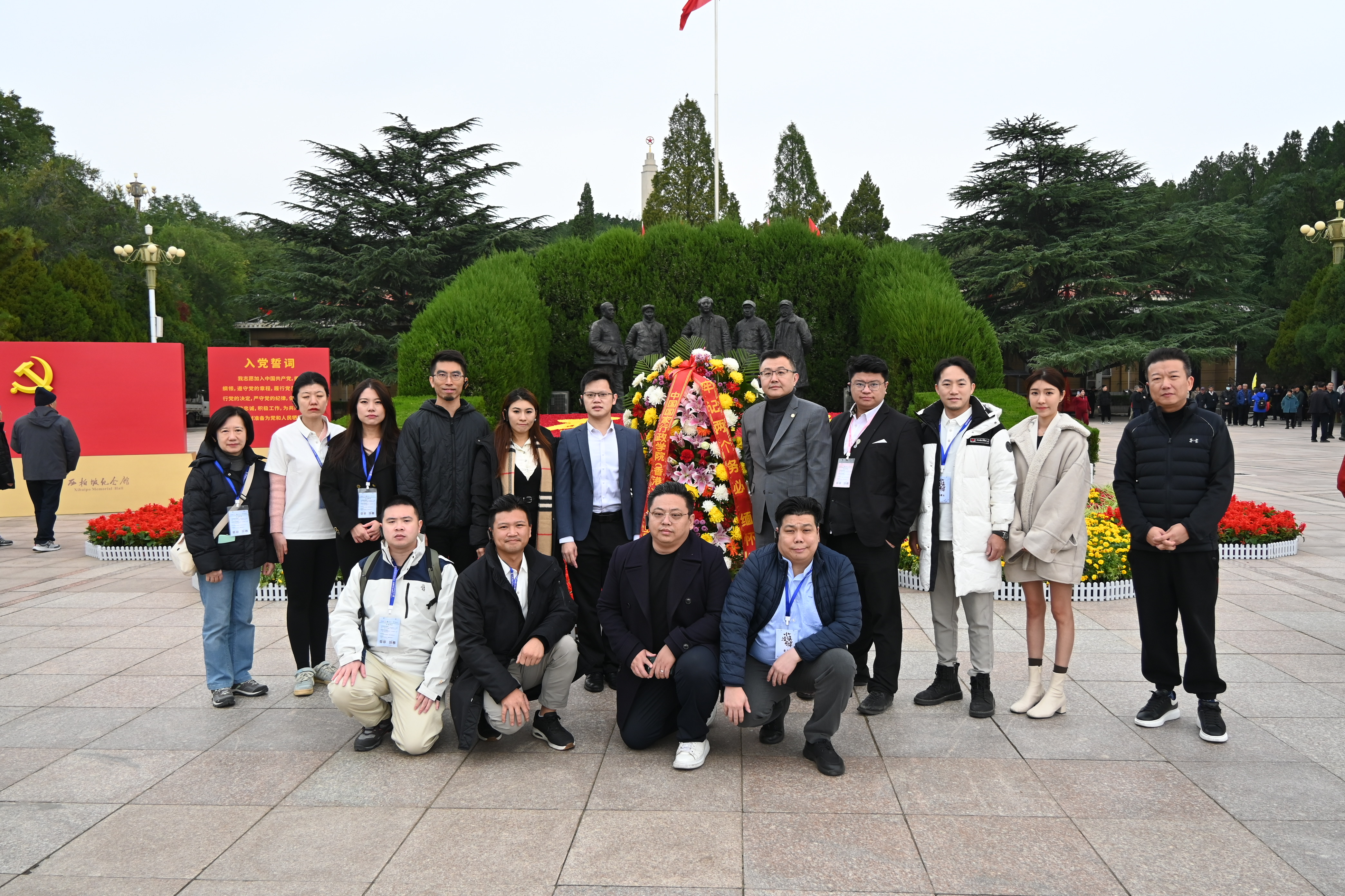 西柏坡作為「新中國從這裏走來」的革命聖地,是採訪團紅色教育的第一站。這裏曾是中共中央舊址,1949年在此召開的七屆二中全會,為新中國建設擘畫了藍圖。參訪團首先來到五大書記銅鑄像前,舉行了莊重的獻花儀式——團員們整理花籃緞帶、向革命先輩鞠躬致敬,大灣區企業聯合會會長、副團長陳孟昇在採訪中動情表示:「唱國歌、敬禮時特別感動,這種現場的震撼比任何文字都深刻。」