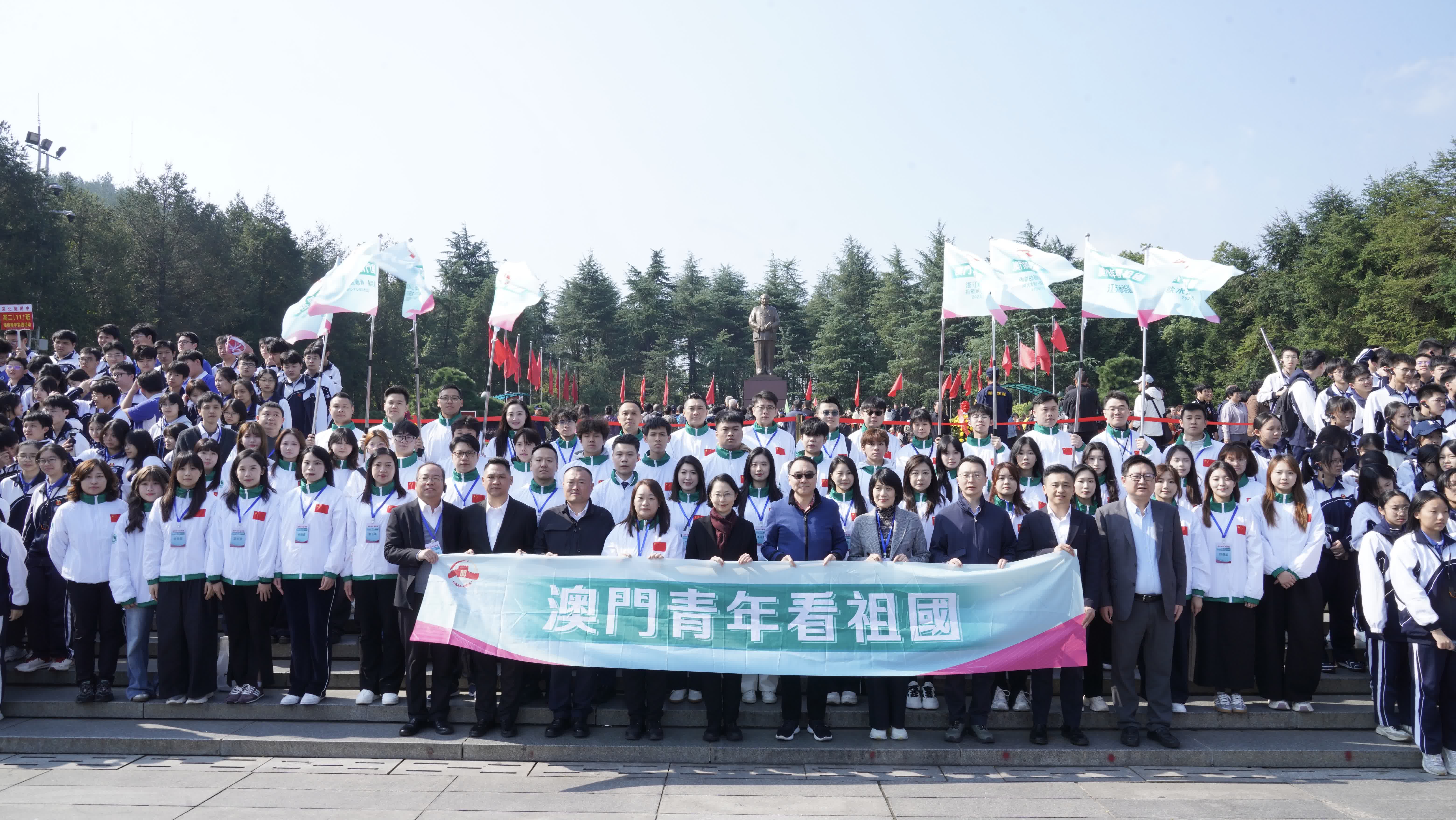 湖南省韶山市是毛澤東主席的故里,更是一座承載着紅色記憶的革命聖地。10月23日上午,澳門社會文化司司長柯嵐、中央人民政府駐澳門特別行政區聯絡辦公室教育與青年工作部部長李雪飛及近50位澳門青年於湖南省韶山市毛澤東廣場舉行會師儀式,並向毛澤東同志銅像敬獻花籃,表達對偉人的敬意。