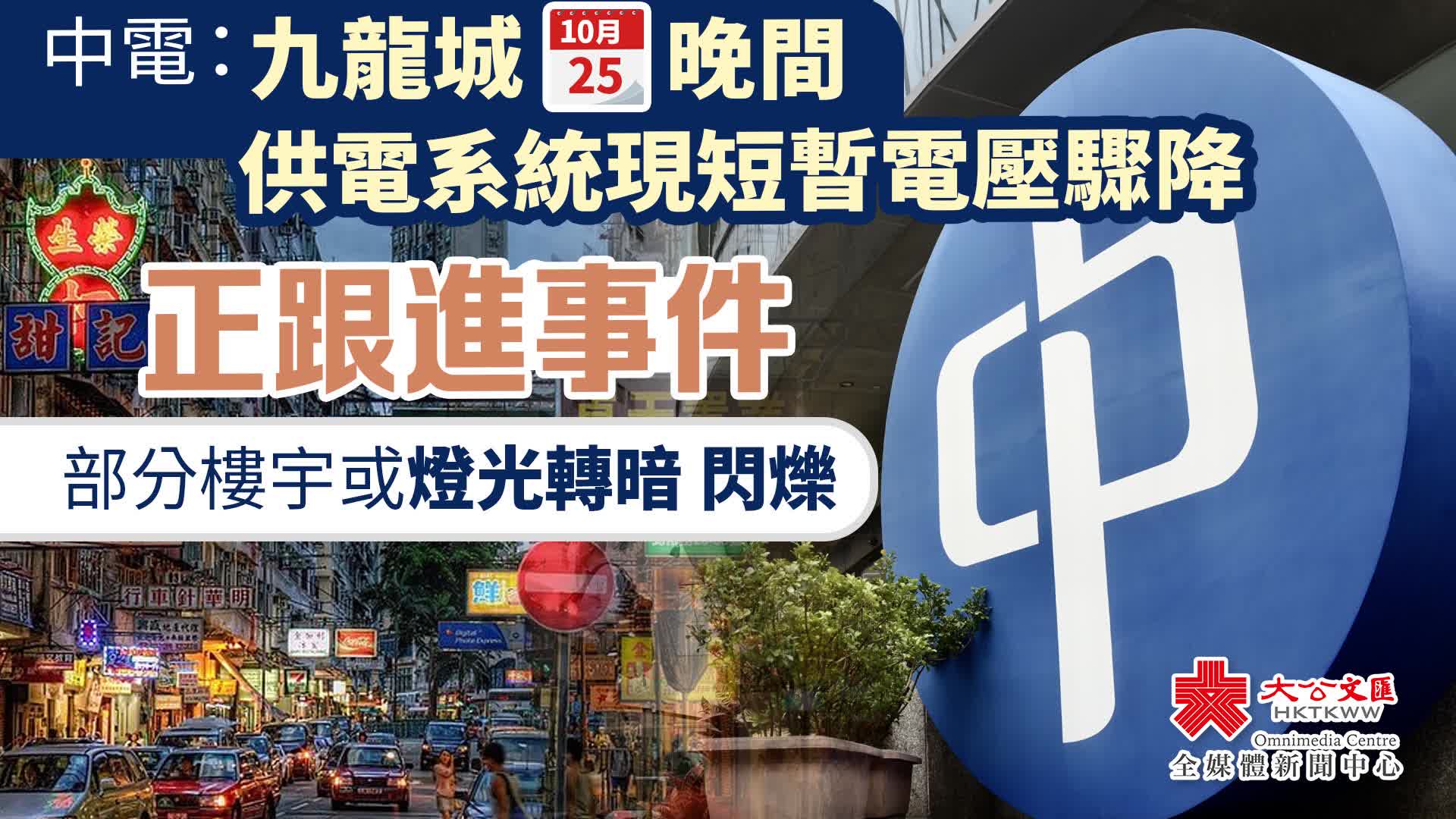 發言人指出,附近部分樓宇可能出現燈光轉暗或閃爍,中電正跟進事件。