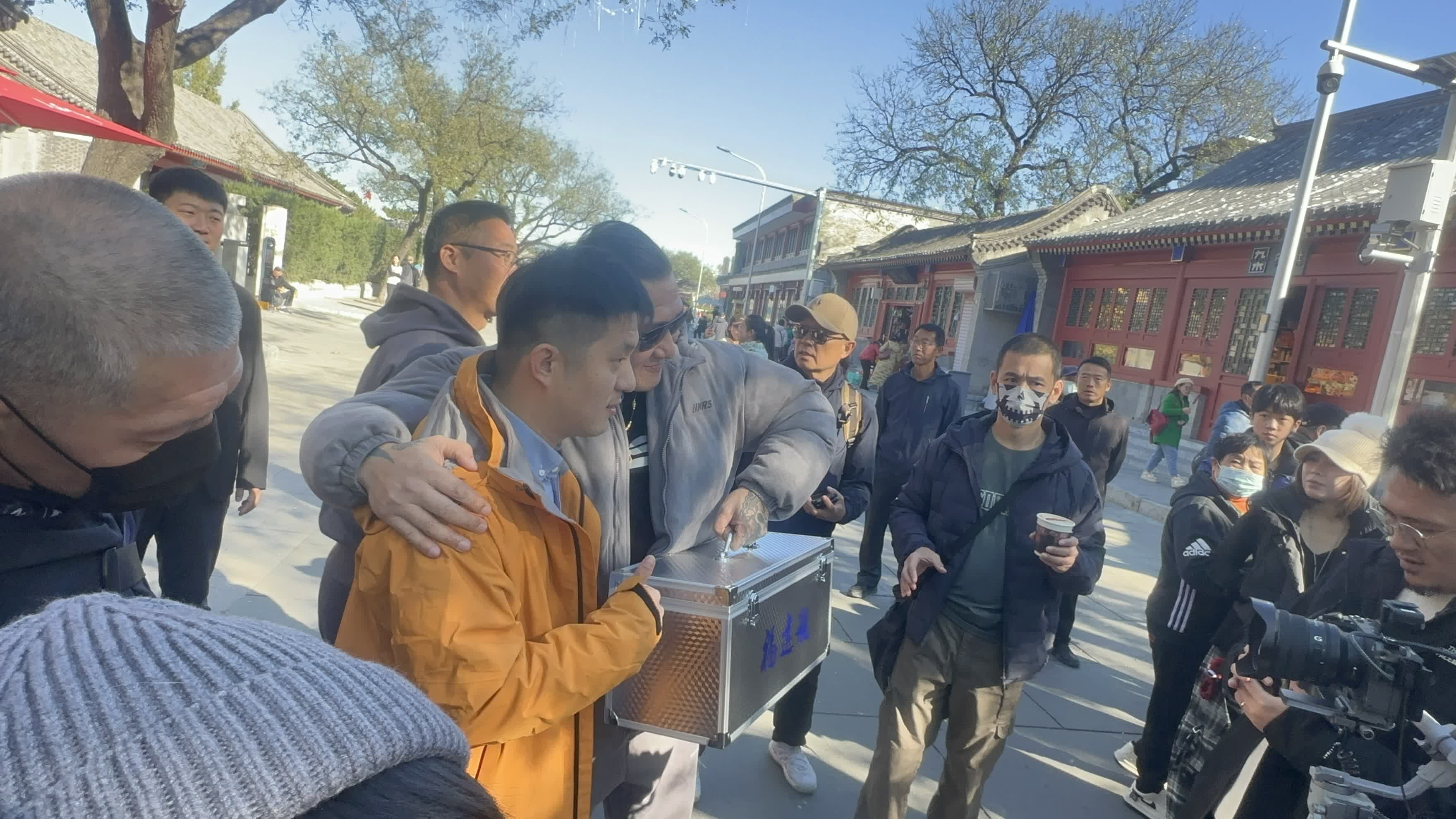 一位粉絲特意帶來「福建艦」模型,想要作為禮物送「館長」。或許是心情太過激動,粉絲在打開箱子展示時雙手不停發抖。見狀,「館長」拍了拍他的肩膀,輕聲安慰道:「慢慢來,不要再發抖啦。」合影結束後,粉絲還熱情地向「館長」道一聲「歡迎來到北京」,簡單的話語與互動間,傳遞的正是兩岸同胞間的真情。