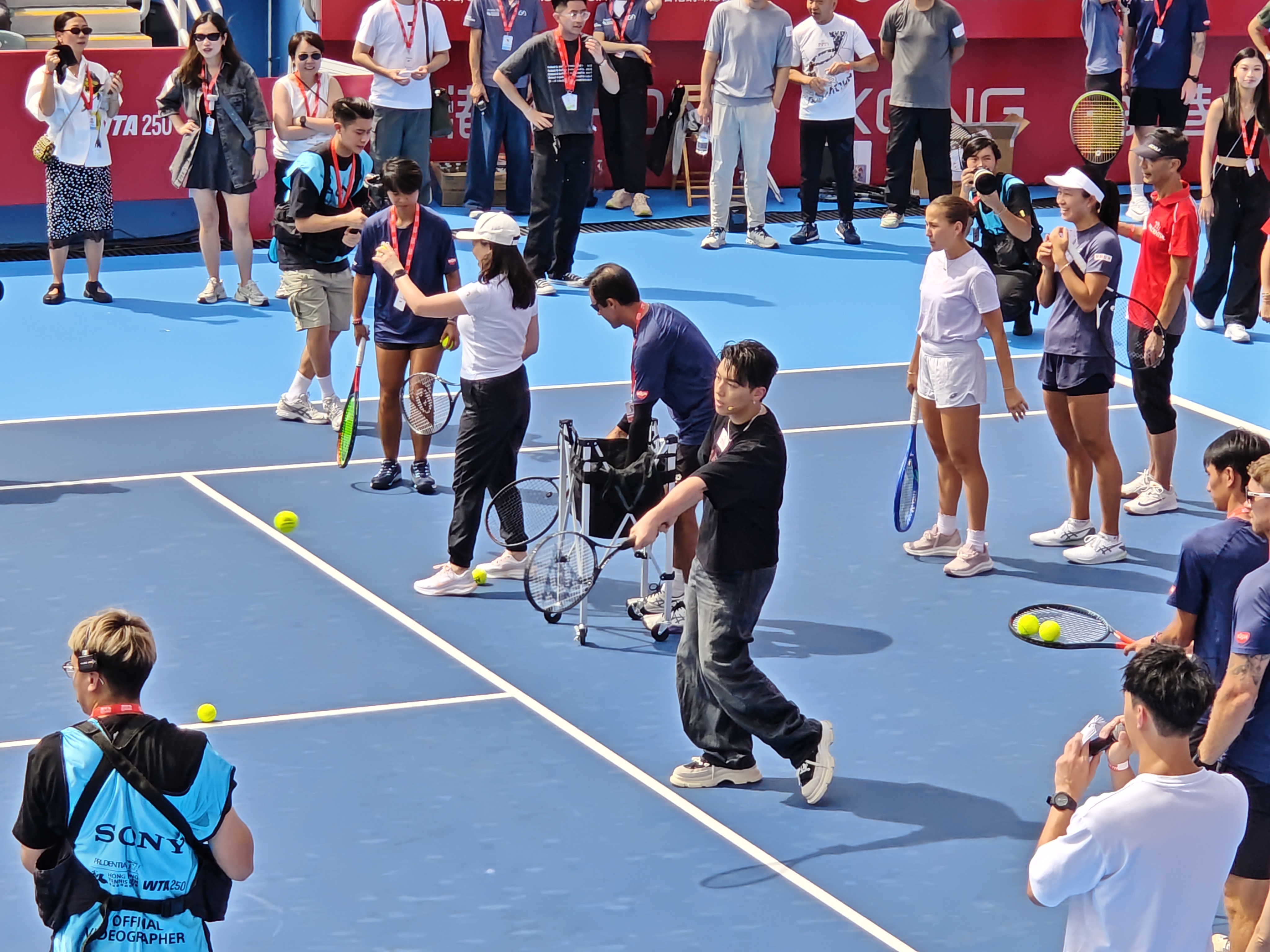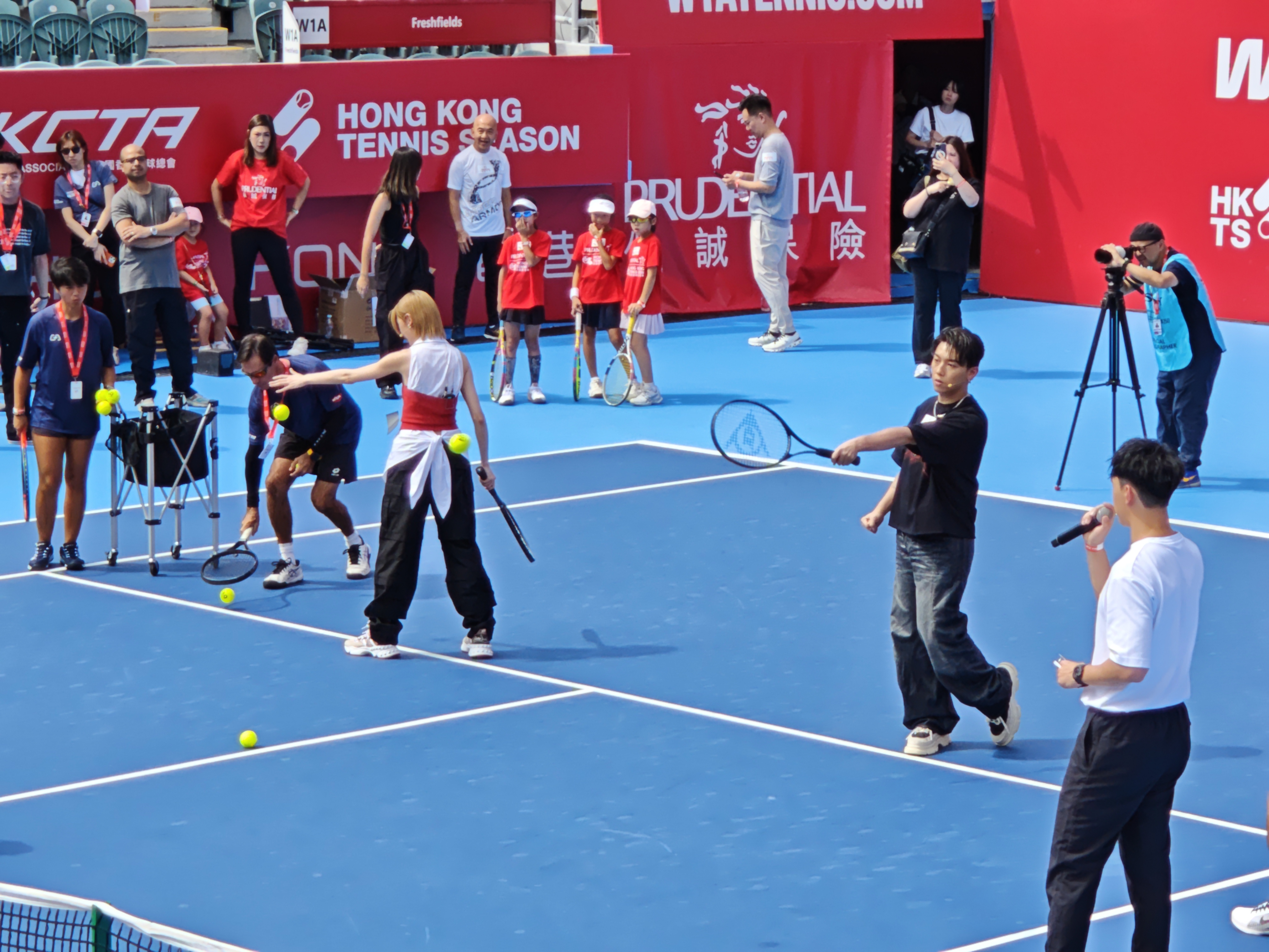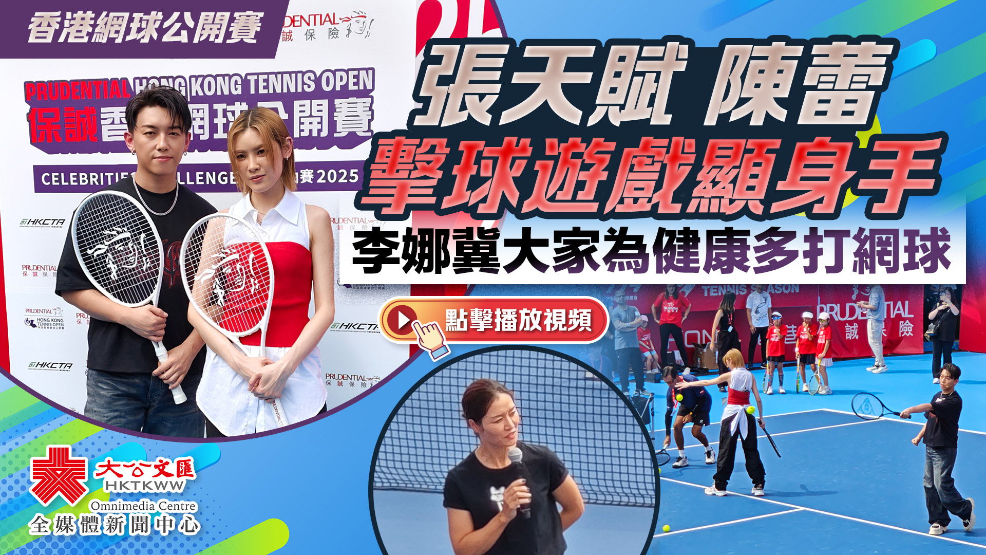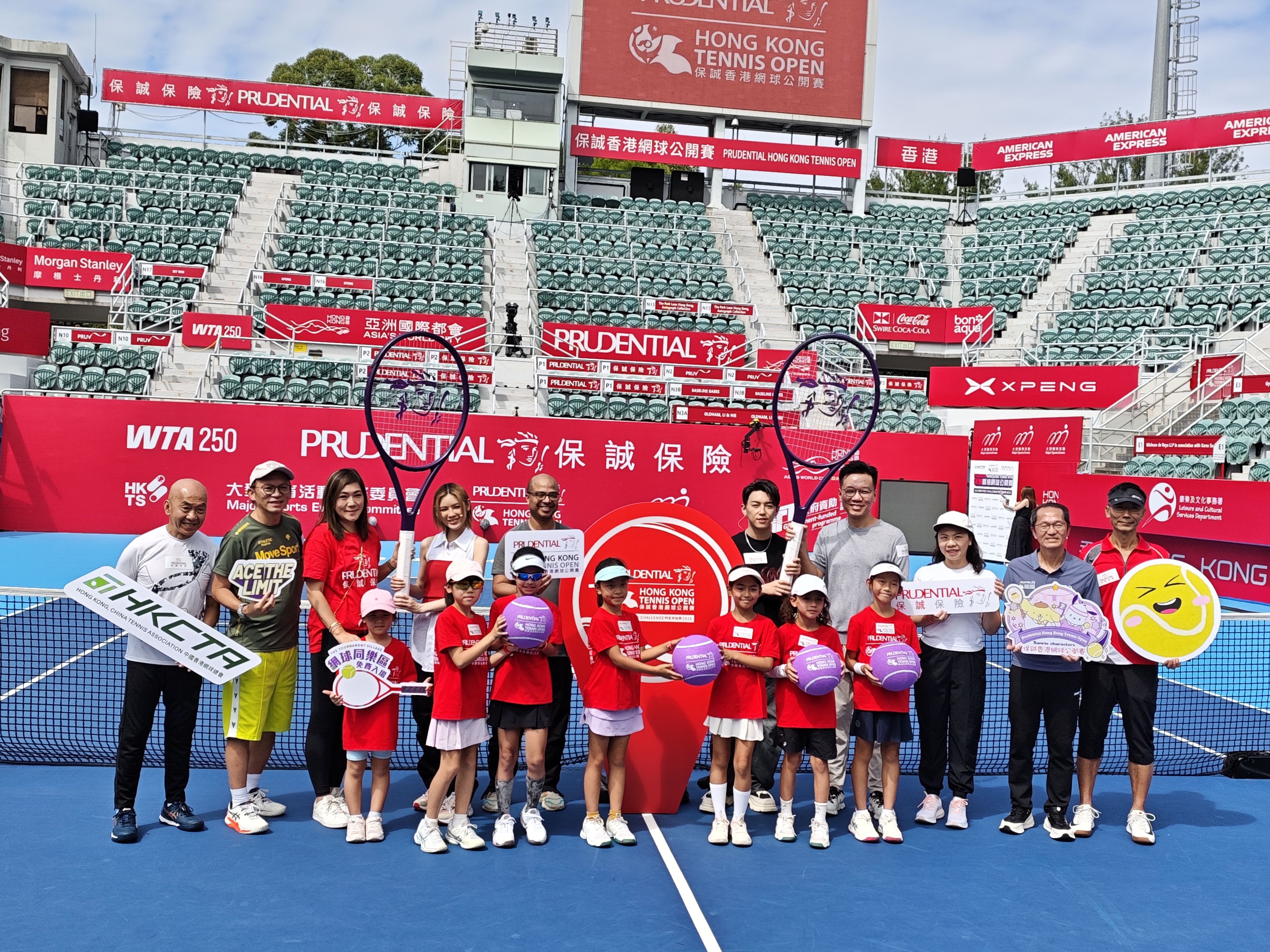 (大公文匯全媒體記者 劉鴻霖)「保誠香港網球公開賽2025」自昨日(25日)至11月2日假維多利亞公園網球主場舉行。大會今日(26日)於維園球場舉辦明星領袖賽,知名歌手MC張天賦和陳蕾一同參與趣味擊球遊戲;本次賽事總監、網球名宿李娜亦來到現場。