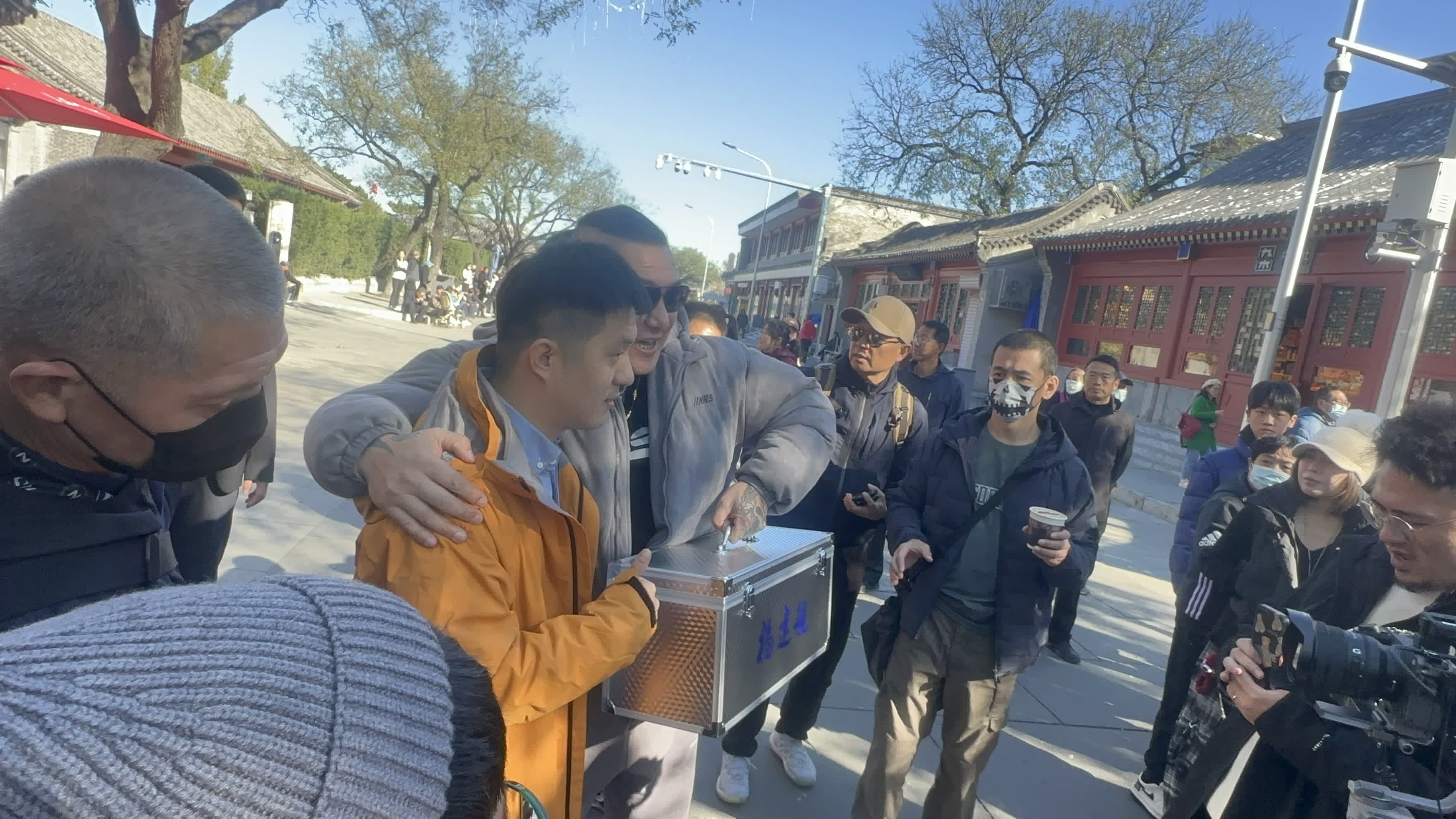 或許是心情太過激動,粉絲在打開箱子展示時雙手不停發抖。見狀,「館長」拍了拍他的肩膀,輕聲安慰道:「慢慢來,不要再發抖啦。」待合影結束後,粉絲還熱情地向「館長」道一聲「歡迎來到北京」,簡單的話語與互動間,傳遞的正是兩岸同胞間的真情。
