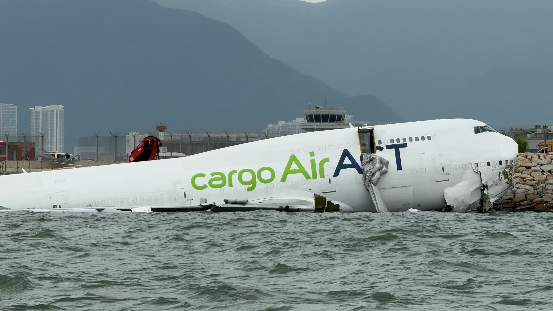 大公文匯全媒體報道,10月20日,一架由阿聯酋阿勒馬克圖姆國際機場抵港的B744貨機(航班編號UAE9788),在香港國際機場北跑道降落後偏離跑道並滑出海面。打撈貨機殘骸工作今日(26日)進入第四日,兩艘打撈船「南天翔」和「南天鵬」中午過後開始從海中吊起最大件的機身連機頭。