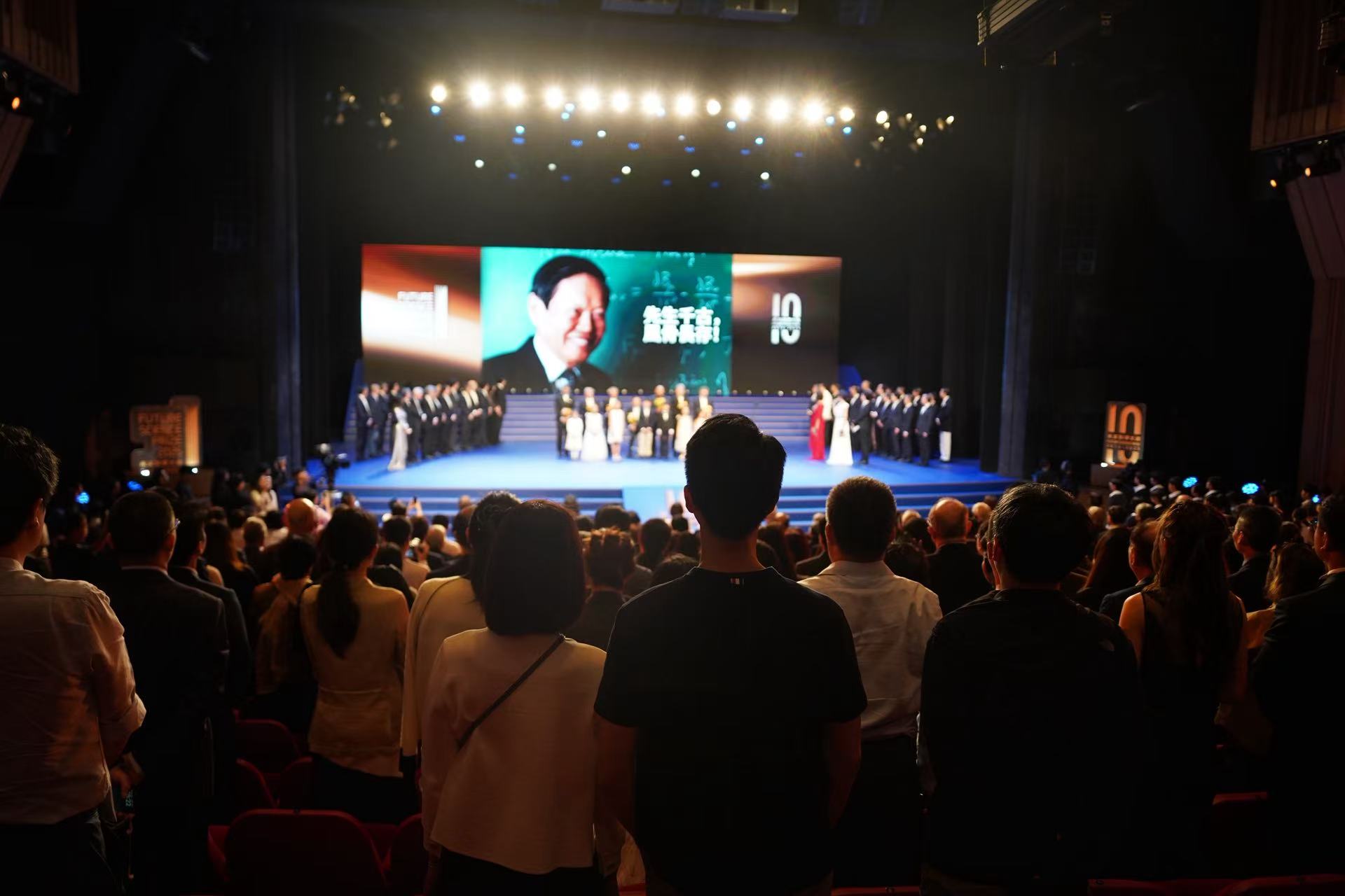 未來科學大獎基金會秘書長、未來論壇發起人兼秘書長武紅在頒獎典禮結尾,帶領在場所有人士一同緬懷曾宣布「未來科學大獎」成立、近日因病逝世的著名物理學家、諾貝爾物理學獎獲得者——楊振寧先生。