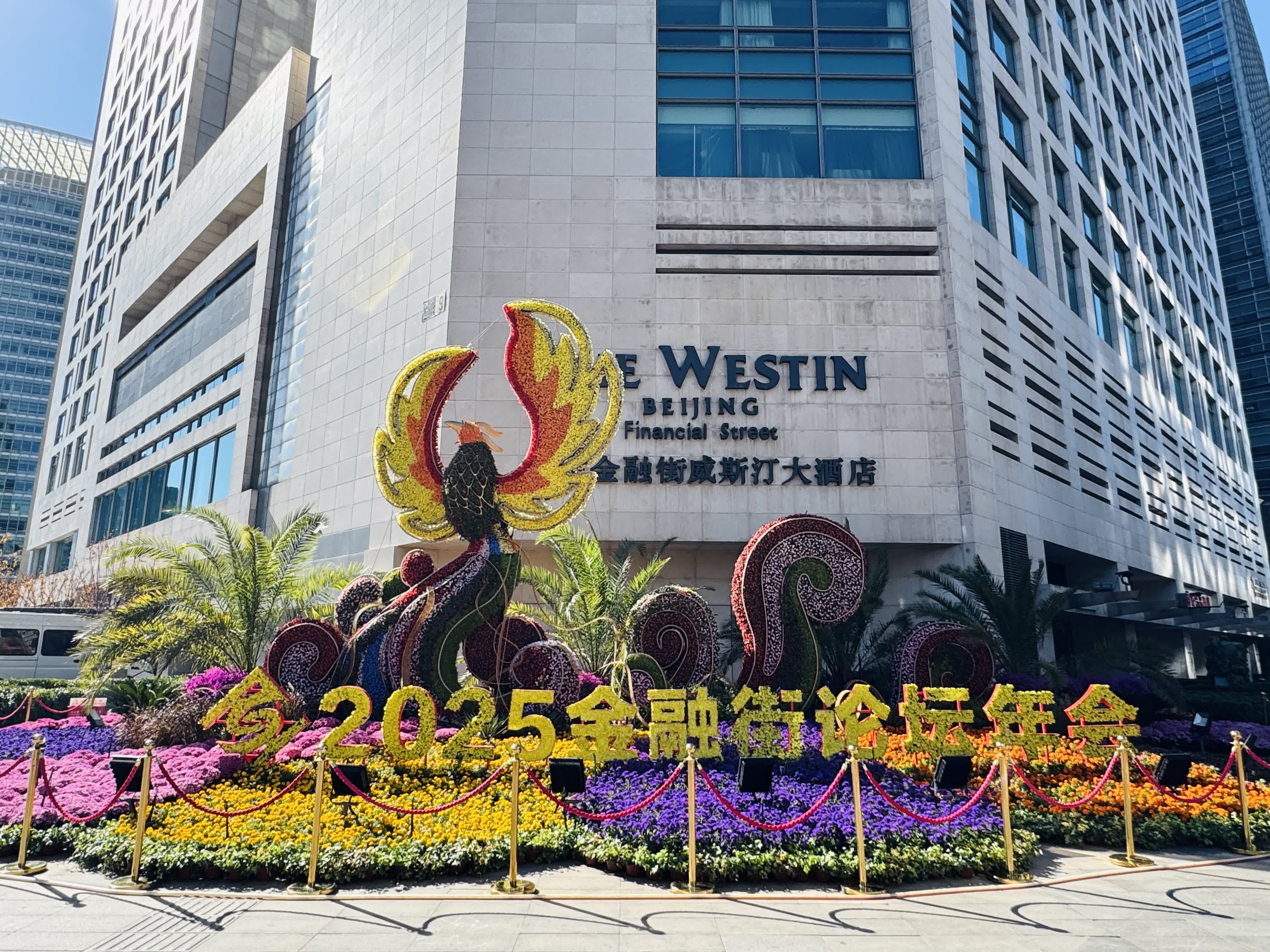 記者在現場了解到,此次金融街環境布置圍繞「丹紅縈繞·暖意盈融」主色調,與各處花壇及燈光景觀共同營造出簡潔大氣、淡雅溫馨的環境氛圍。夜幕降臨後,以金融大街為中心,廣寧伯街上空的10只鳳凰燈將依次點亮,金融大街及周邊區域行道樹上纏繞的線條燈也將同步開啟,燈光與夜色交相輝映,為論壇增添了濃厚的盛會氣息。
