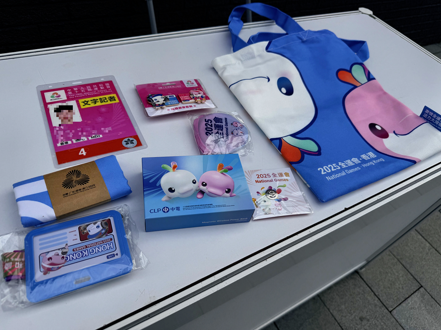 作為香港首次參與的全運會,主辦方可謂稱得上全力以赴——中山公園一邊的停車場內,賽事用車整齊排成一列;往日熟悉的中山公園體育館也煥然一新,換上了湛藍色的新衣,在夕陽的餘光裏熠熠生輝;就連媒體包也跟往常不同,除了毛巾、徽章,甚至還有貼心準備的充電寶。精心設計的「Hong Kong」元素隨處可見。