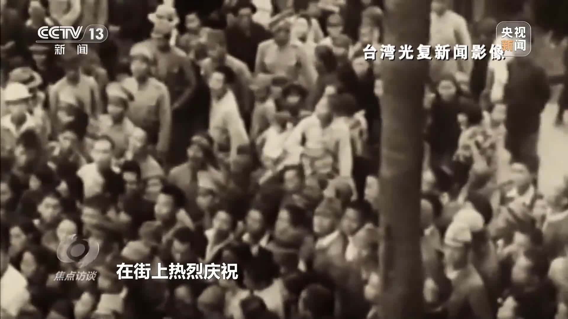 這是包括台灣同胞在內的全體中華兒女歡欣鼓舞、揚眉吐氣的光榮時刻,是中國人民抗日戰爭暨世界反法西斯戰爭勝利的重要成果,它也充分證明,兩岸同屬一個中國的事實無可辯駁。