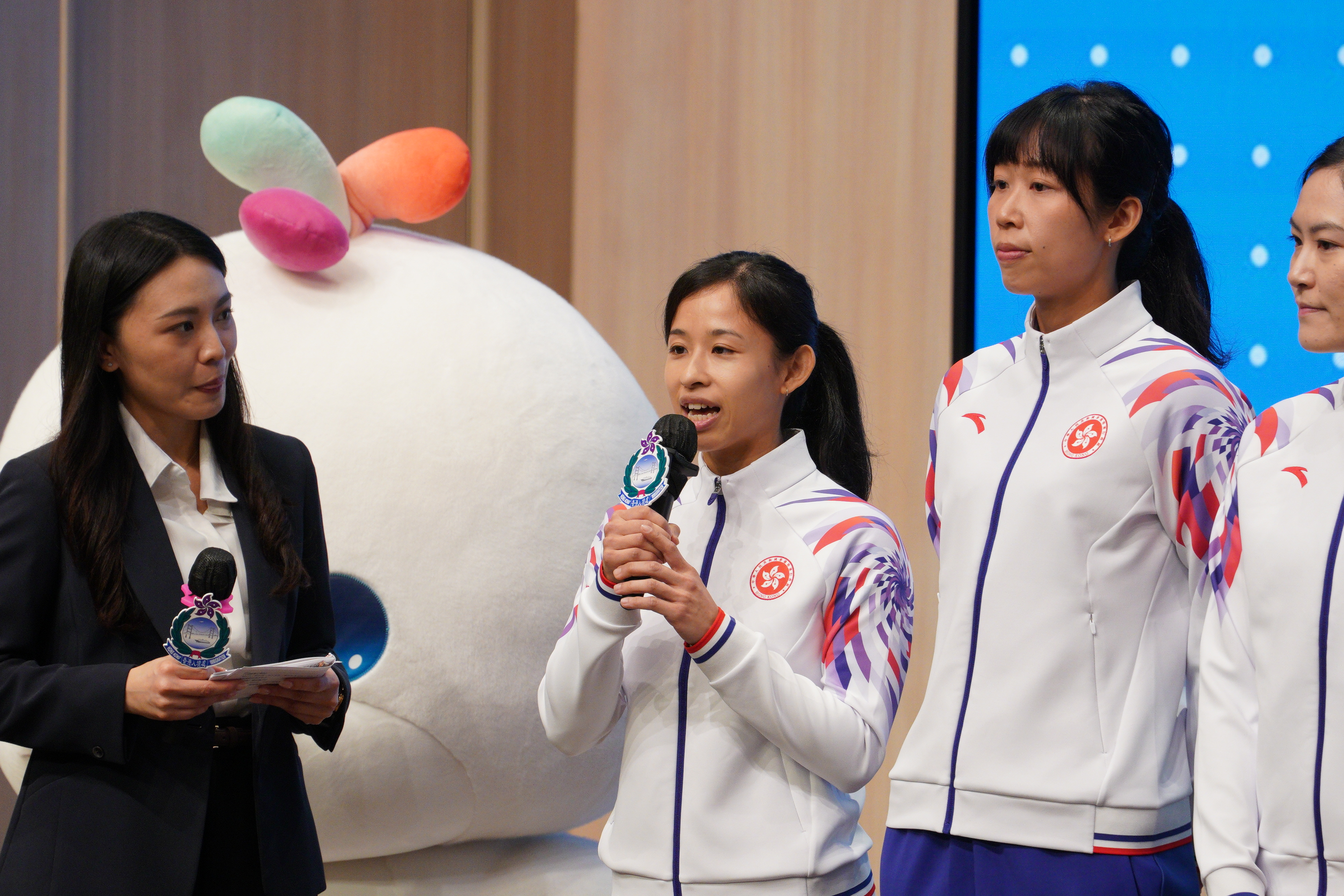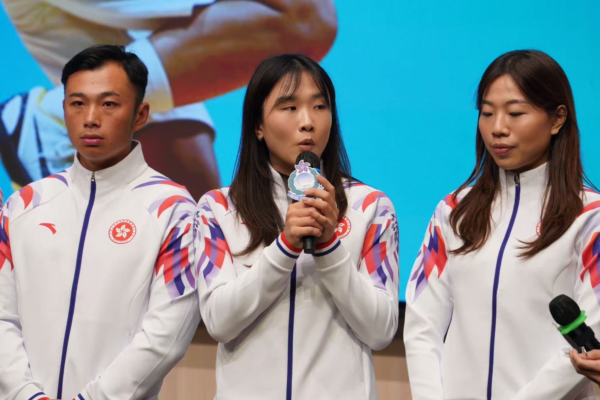 入境處共有10名同事參加全運會8項比賽,包括競賽及群眾賽事。各位運動員在典禮上分享了他們的參賽感受。參與男子群眾比賽乒乓球的蔡鎮滔(高鐵西九龍管制組)表示:「場地適應很重要,要根據燈光等設施來調整自己的打法。」出戰男子群眾比賽氣排球的謝偉鈺(港珠澳大橋管制組)分享:「氣排球比普通排球輕一些,這項運動很有趣味性,可以打到80歲。」參加女子群眾比賽保齡球的梁芝榕(專責調查組)稱:「看到很多市民來為我們加油,這是一劑強心針。」出戰女子三人籃球的唐曉蕾(遣送審理及訴訟組)分享備戰經驗:「除了在香港恒常訓練,也去內地打友誼賽,從而及時調整自己的策略。」出戰女子成年組籃球的張楚盈(居留權證明書組)表達心情:「緊張又期待,可以和內地頂尖選手切磋。」參與女子曲棍球的鄭苑儀(專責調查組)分享心態:「除了比賽也要好好享受,不要給自己設限。」代表女子成年組排球的馮芷茵(羅湖管制組)談及團隊情誼:「最近見隊友的時間多過見家人。」