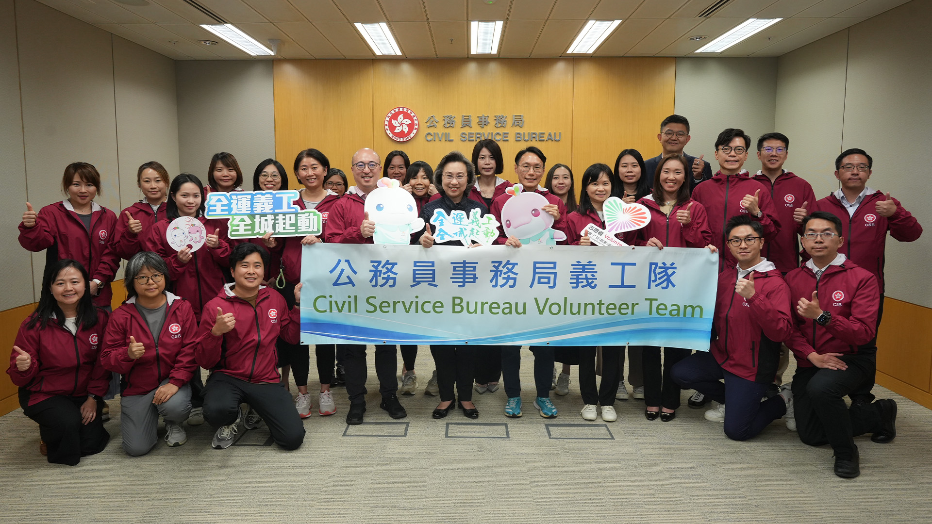 公務員事務局積極統籌公務員義工支援十五運會及殘特奧會,負責在各個競賽項目、群眾賽事項目及相關大型活動,提供不同範疇的義工服務。除了公務員事務局義工隊外,不少在職及退休的公務員都踴躍支持全運會,總共有超過 3200名人員獲正式委任為全運會義工,當中約 2500位來自 66 隊公務員義工隊的隊員。
