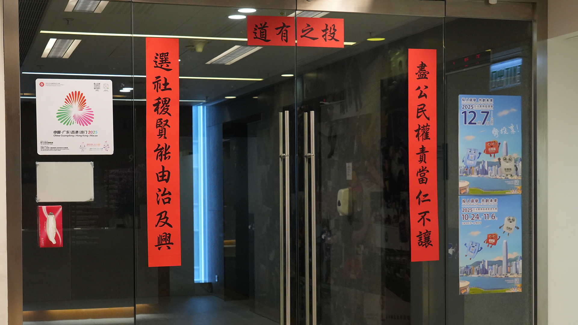 公務員事務局轄下的法定語文事務部是政府內的語文專家,職責包括為政府各局和部門提供翻譯、傳譯和審稿服務。投票乃眾人之事,法定語文事務部同事近日文思大發,特意為12月7日立法會選舉投票日創作對聯,現時已張貼於公務員事務局九樓大堂出入口的當眼位置。