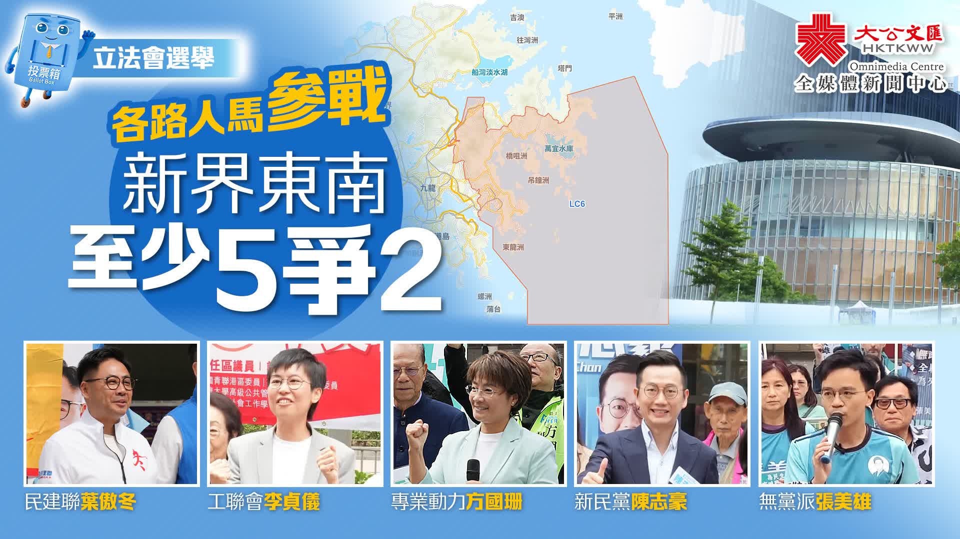 截至周一早上,新界東南選區參選人包括民建聯葉傲冬、工聯會李貞儀、專業動力方國珊、新民黨陳志豪,以及報稱獨立的張美雄。