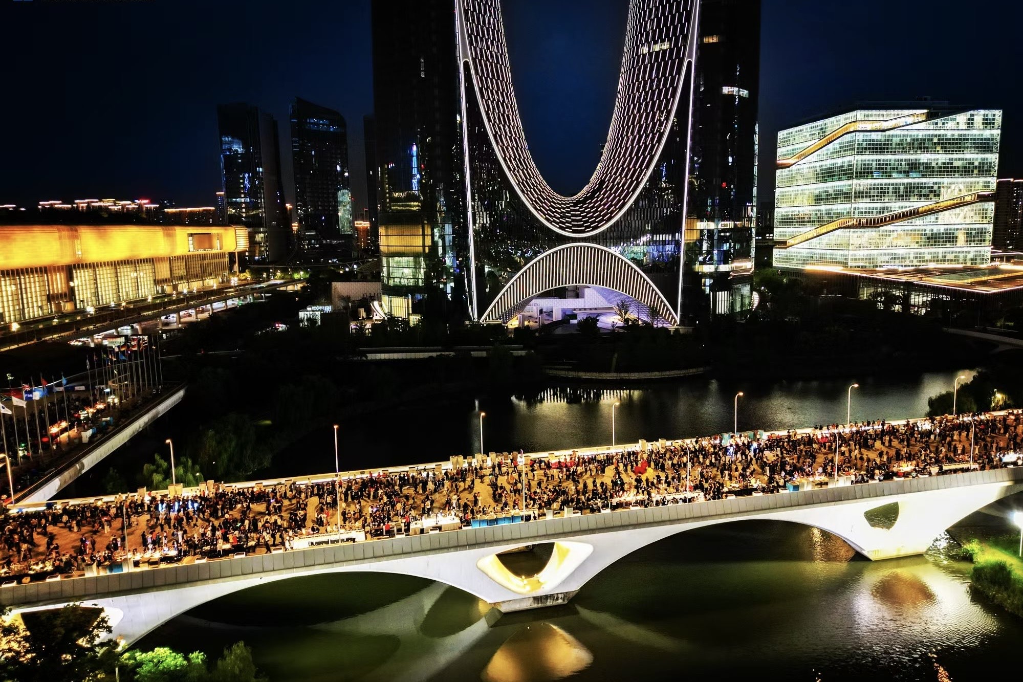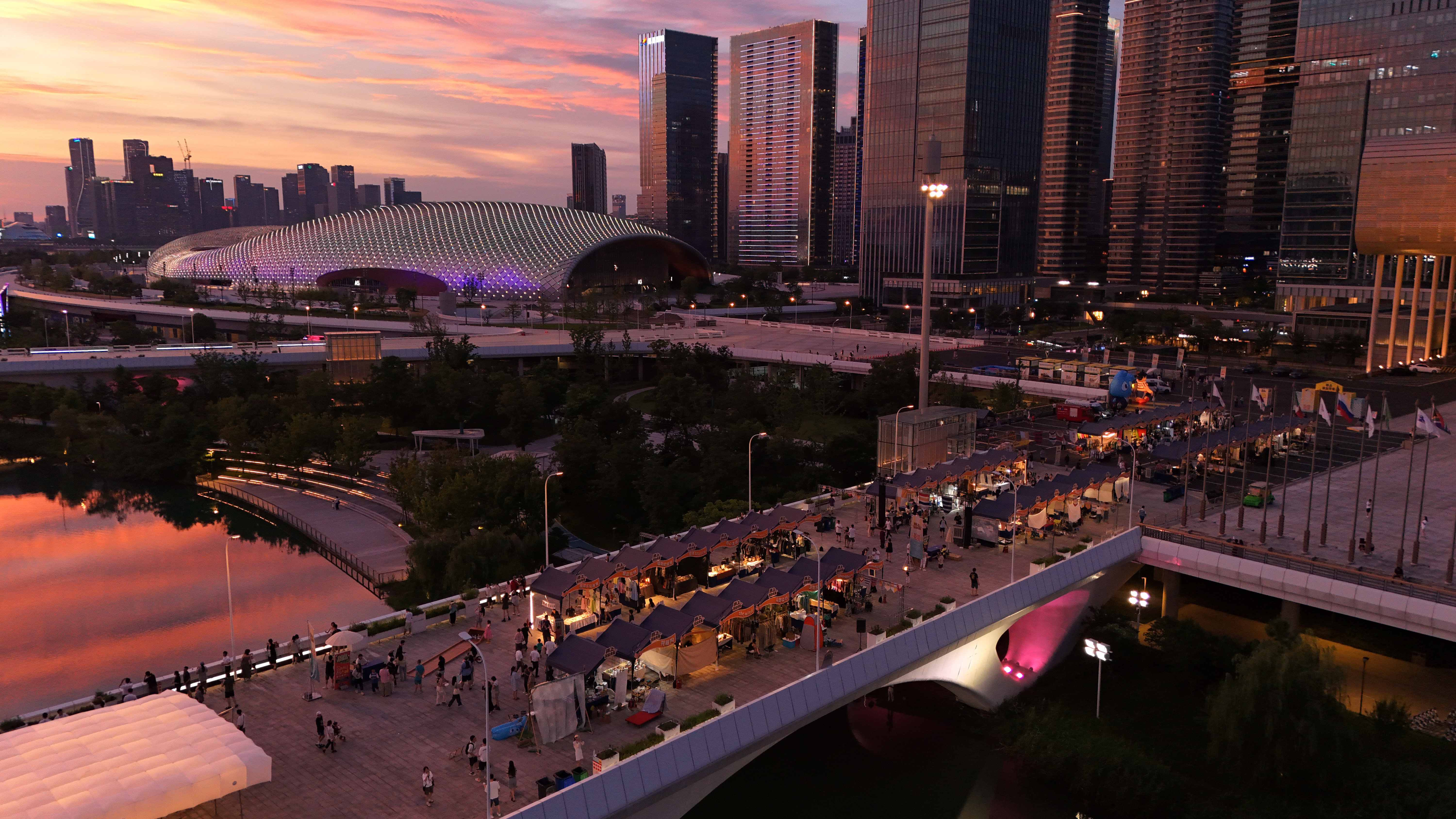 「萊福島音樂節」「橋上市集」「橋下chill划水局」……在消費場景打造上,世紀城着力塑造青年嚮往之城。在奧體橋上舉辦的多場潮流活動,吸引了7萬多市民參與,媒體曝光量超6億。同時,亞運三館的配套商業奧體AT中心已於9月底試營業,今年年底將整體開業,進一步豐富區域商業業態。