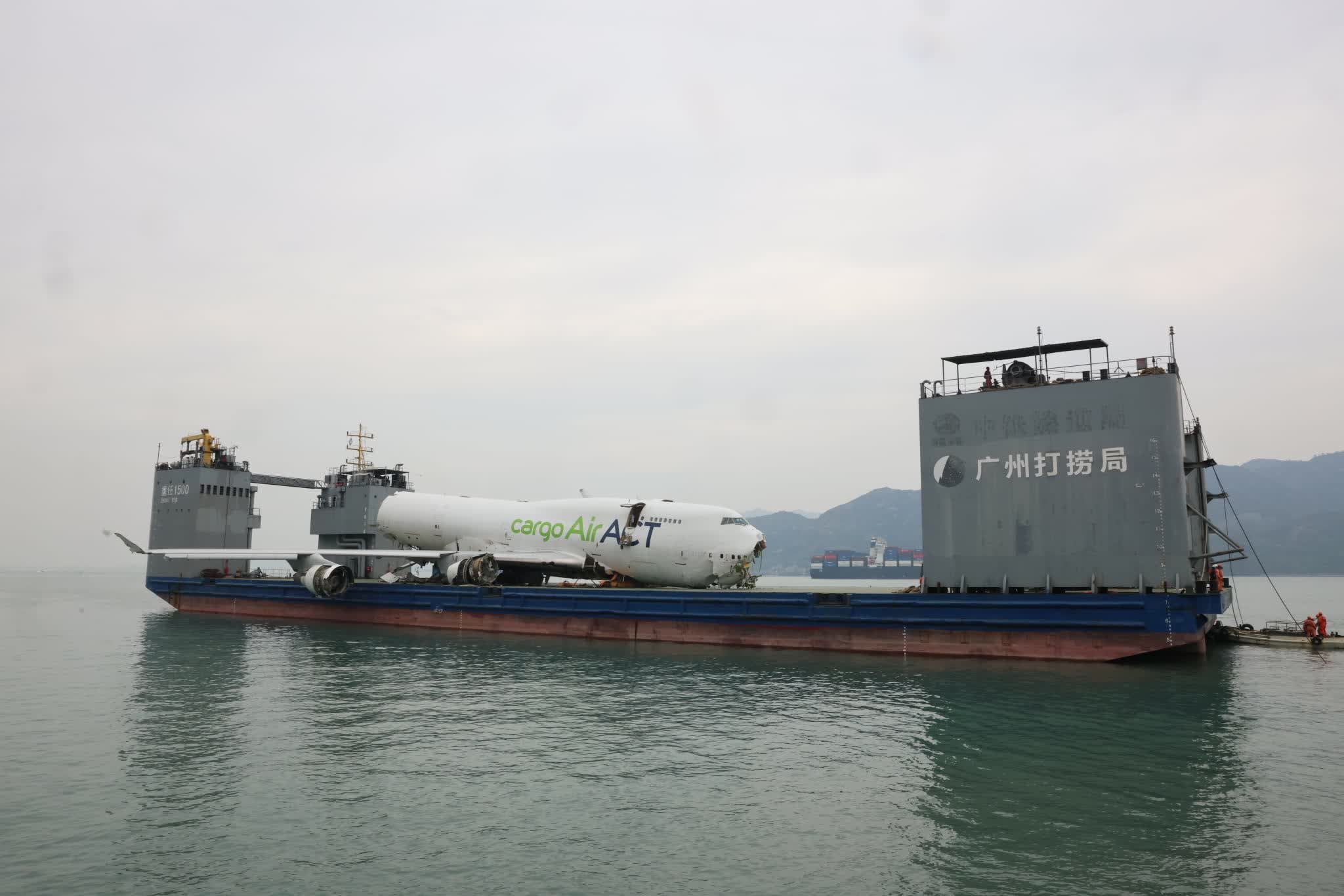 機管局表示,打撈團隊晚上7時完成失事貨機打撈工作。打撈船今日先後從海中吊起失事貨機的其餘部分,包括一個飛機引擎及一組起落架。失事貨機機身及其他部分已移到存放點,交由民航意外調查機構處理。打撈工作完成後,打撈船、躉船及其他相關船隻已陸續離開機場水域。經安全檢查後,香港國際機場北跑道預計於晚上11時重開,恢復正常運作。