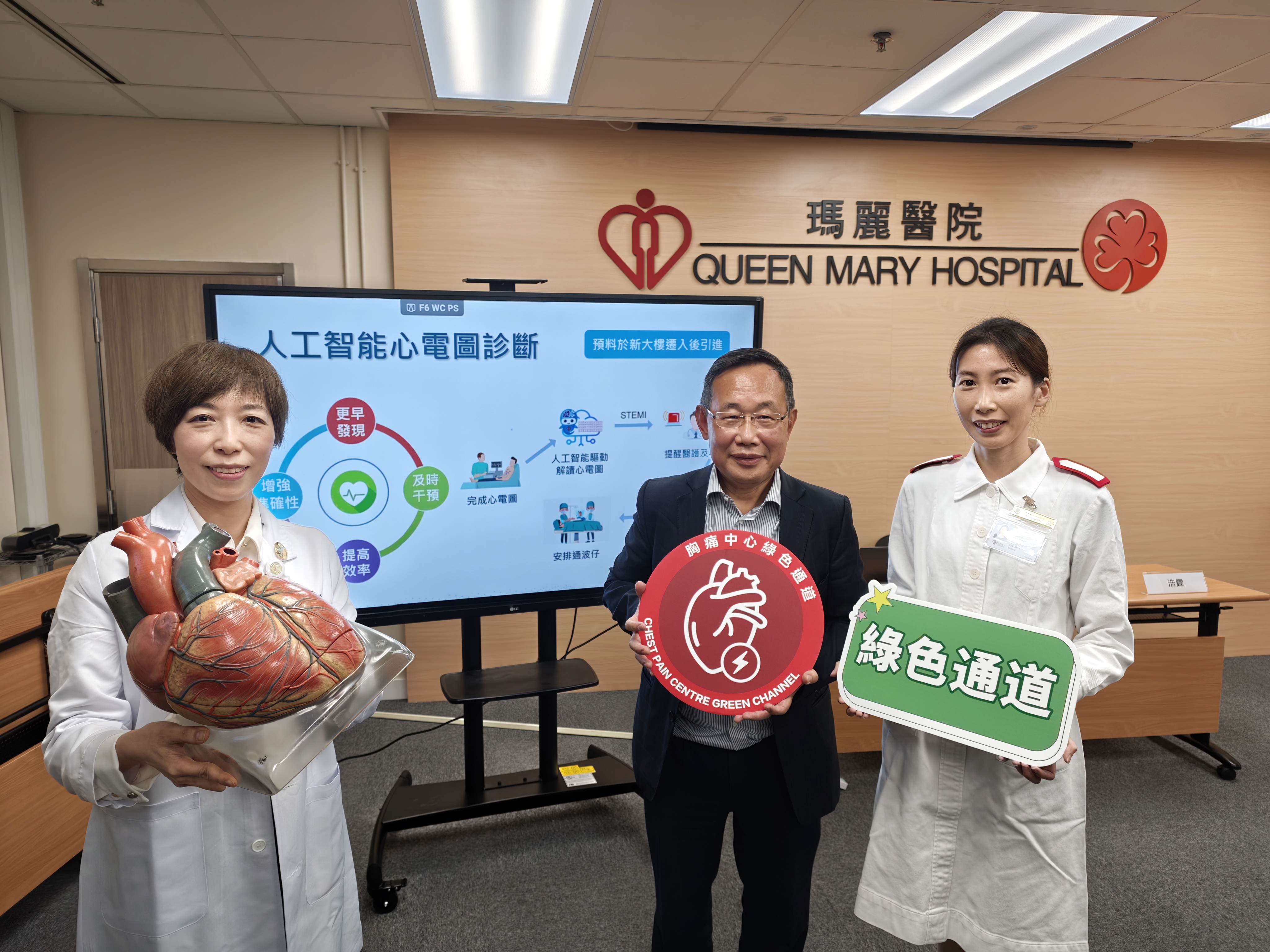 為縮短患者手術等候時間,瑪麗醫院胸痛中心推出了多項優化措施。陳穎思介紹,院前急救系統可在接報12分鐘內抵達現場,並在現場或救護車上提前為患者進行心電圖檢查;檢測結果將即時傳至醫院,醫生可預先評估病情並準備「通波仔」;中心更設綠色通道,可在病情分流下迅速安排患者接受治療。