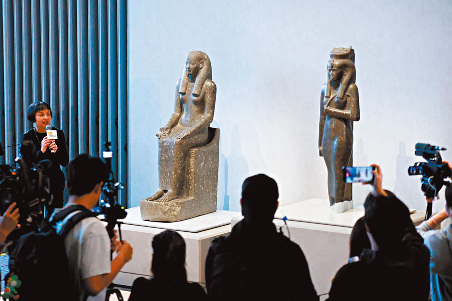 (香港文匯報記者 張茗)香港故宮文化博物館即將舉辦歷來規模最大、內容最全面、展期最長的古埃及文物展覽「古埃及文明大展─埃及博物館珍藏」,展出250件雕像、石碑、金器、木乃伊棺槨和動物木乃伊等埃及珍貴文物,部分更屬埃及方最新出土的考古發現。館方昨日舉行文物開箱儀式,其中三座珍貴巨像率先亮相,並由今日起在博物館地下大堂及二樓中庭率先展出,是博物館自開館以來首次在主展廳外的公共空間展示展品。「古埃及文明大展」則於下月20日至明年8月31日於博物館展廳9舉行。香港故宮文化博物館館長吳志華預計,是次展覽將吸引70萬觀眾人次到場探索古埃及文明的輝煌。