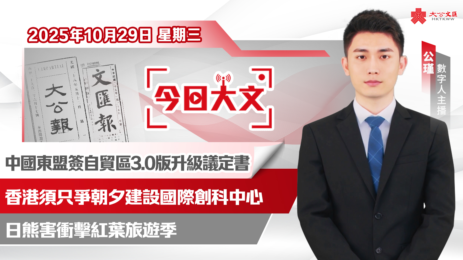 大公文匯網報道,今天是2025年10月29日(星期三),大公文匯網與您速覽報紙看點。