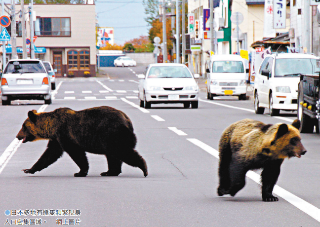 日本部分山地鄉郊地區常年有熊隻出沒,近期卻有多地報道熊出現在人口密集的市區,包括學校和公園附近。法新社引述日本環境省消息,日本今年秋季已有10人死於熊隻襲擊,最新一宗當局證實個案是上周在秋田縣鄉郊,熊隻襲擊造成一死3傷。除此之外,秋田縣秋田市周一發現一名女子在稻田附近身亡,臨近的岩手縣也有一名男子身亡,兩宗事件的遇難者都有被熊襲擊跡象。