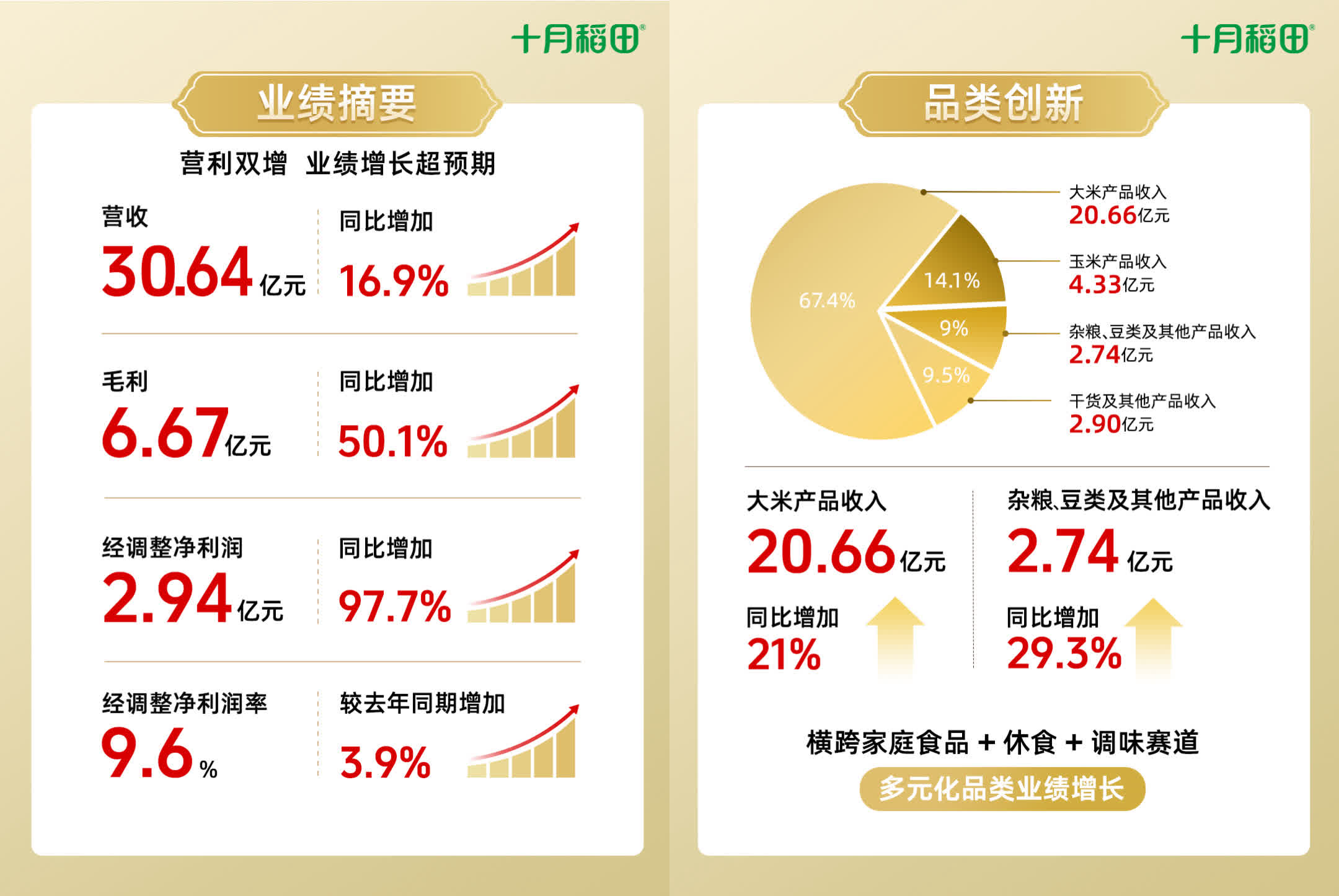 十月稻田(股票代碼:9676.HK)卻呈現快速增長態勢。2025年中期業績報告顯示,上半年,十月稻田實現營業收入與凈利潤雙增長:總收入30.64億元(人民幣,下同),同比增長16.9%;經調整凈利潤為2.94億元,同比大幅增長97.7%;經調整凈利潤率由去年同期的5.7%增至9.6%。在此背景下,家庭食品創新品牌十月稻田憑藉「連續六年東北大米中國銷量領先、連續兩年玉米品類中國銷量領先」的行業地位,以2025新米季為契機,再次實現營收與品牌價值雙增,其背後是「流量轉化——渠道深耕——供應鏈築牆」的商業邏輯,這也為家庭食品賽道提供了可借鑒的增長範式。