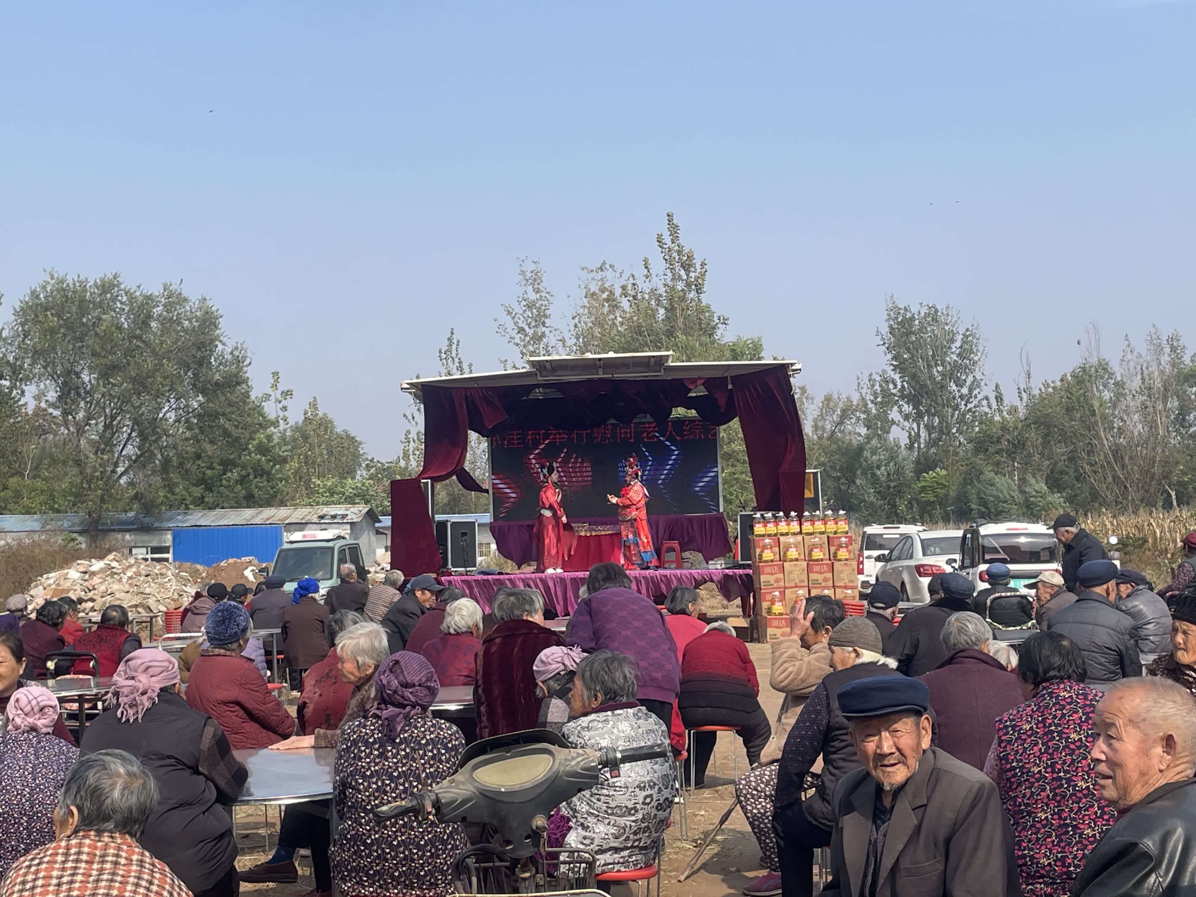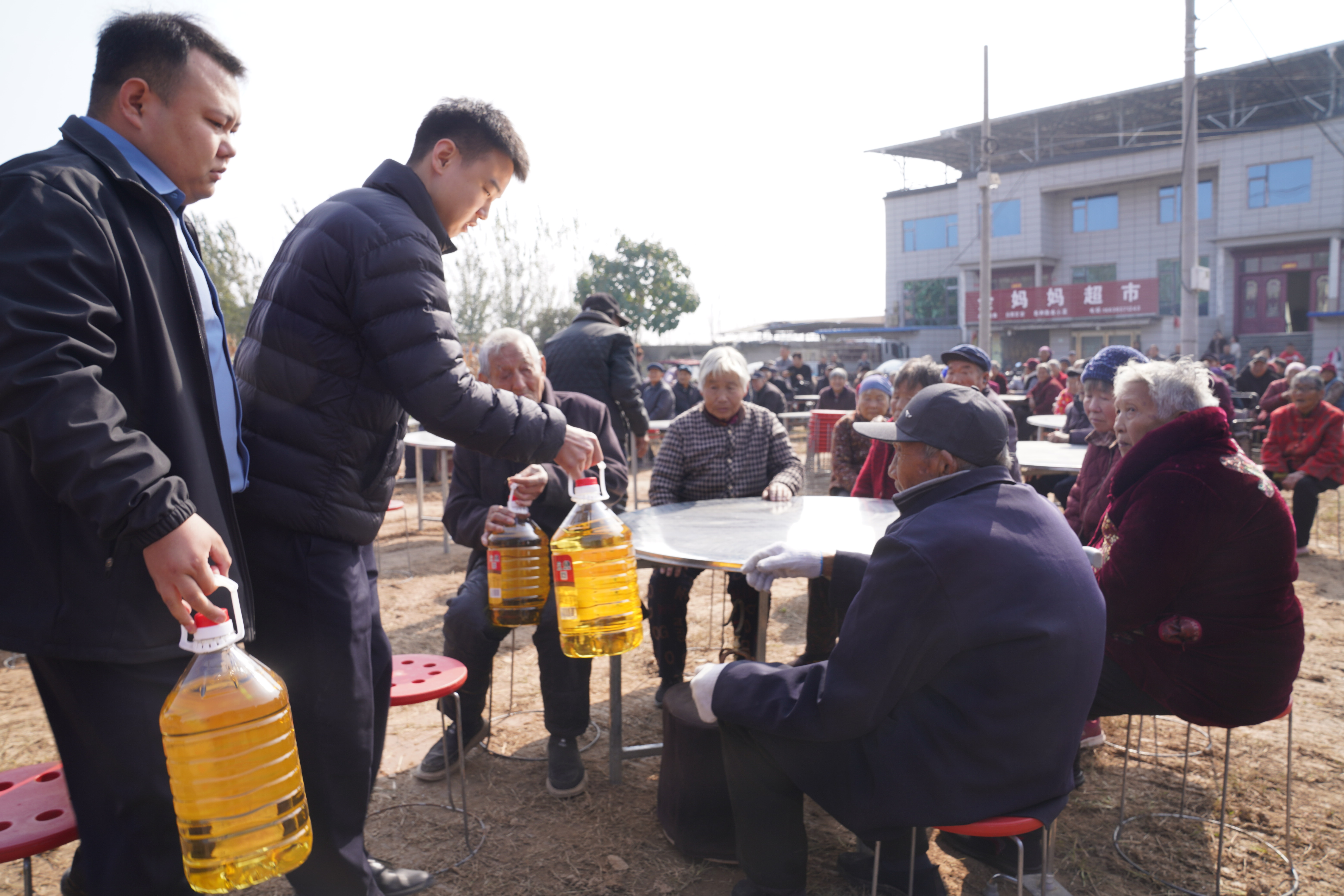 「重陽節到了,讓十里八村的老人們聚一聚,嘮嘮嗑,開開心心過個好節日,也是我和叔叔洪樂的一個心愿,爸爸給與了大力支持。」楊君賢說。他們送給老人們的「重陽大禮」別具匠心:每人一份10斤裝的食用油,保障着老人日常生活的溫飽;而「同吃一桌餐」「同看一台戲」的樸素承諾,則蘊含着「不是親人,勝似親人」的鄉土溫情。這份精心準備的禮物,既是對老人們物質生活和精神生活的關懷,更是對傳統孝道文化最直接的傳承。
