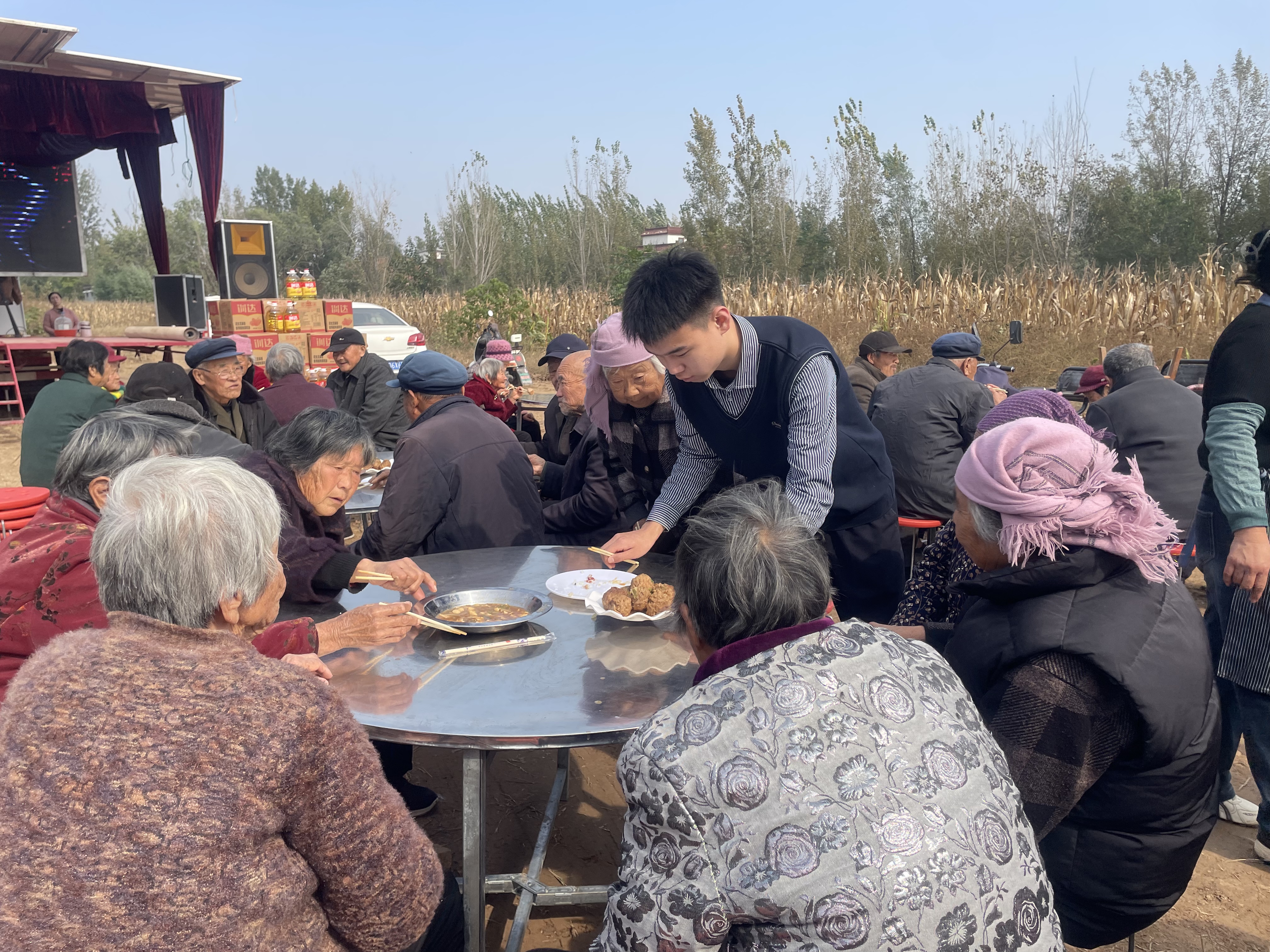 活動現場,楊合田、楊合倫、許書祥等熱心鄉鄰,紛紛前來幫忙,端盤子、送飯、發放食用油……這溫馨的一幕,成為了重陽節裏最動人的風景。