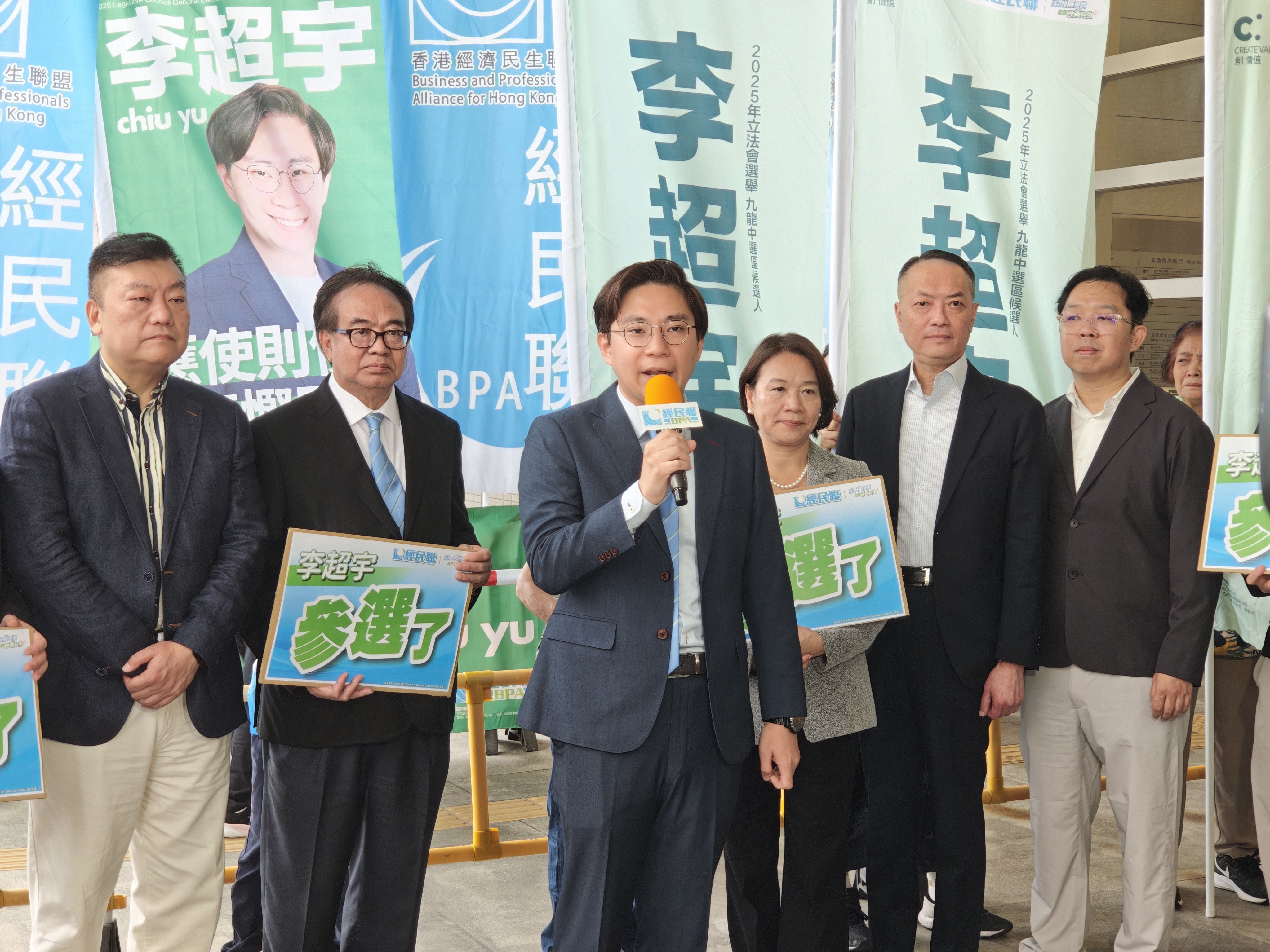 九龍城區區議員、香港經濟民生聯盟成員李超宇在經民聯主席盧偉國、副主席梁美芬、副主席吳永嘉等人的支持下,今日宣布報名參選新一屆立法會地方選區選舉,角逐九龍中議席。
