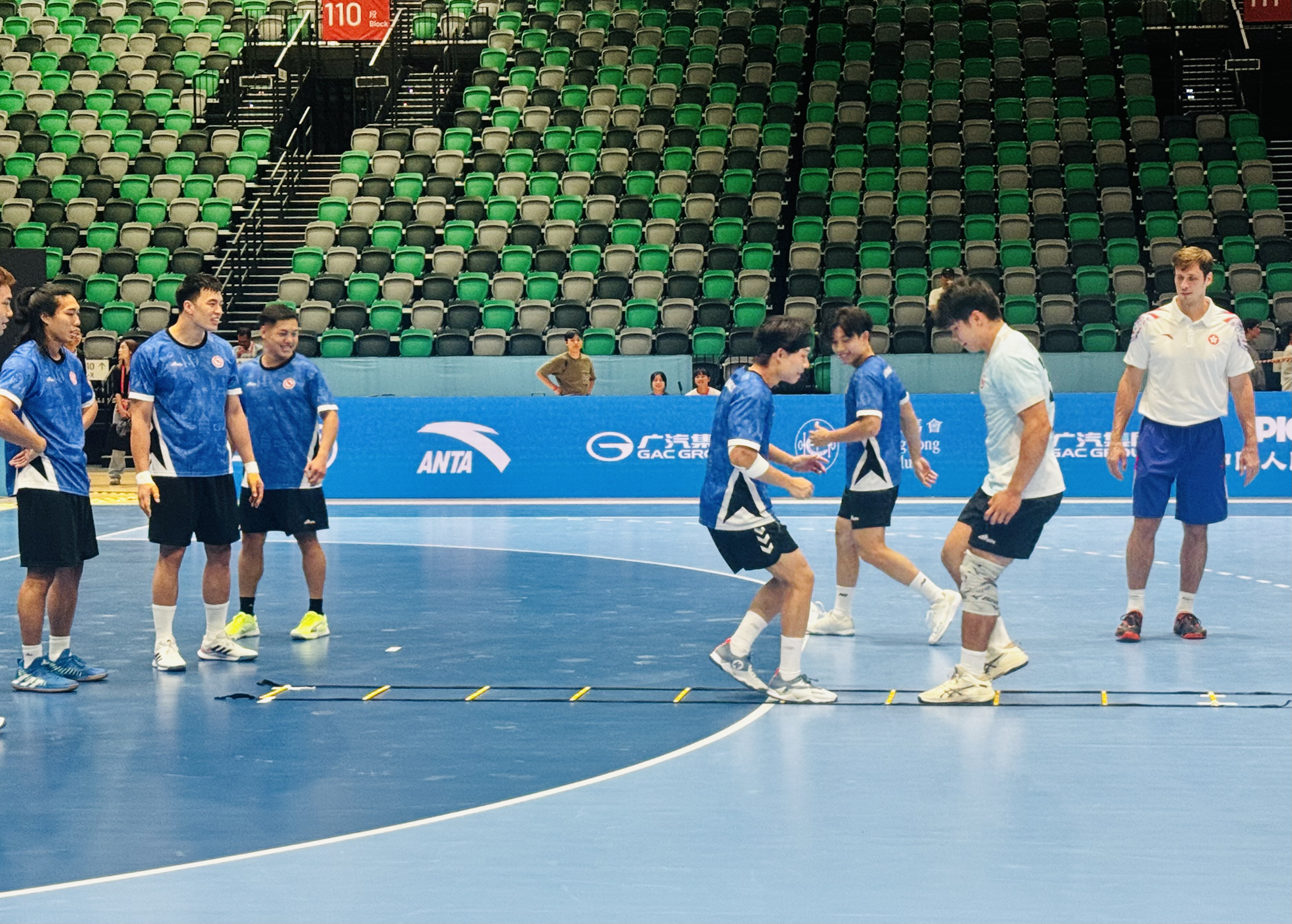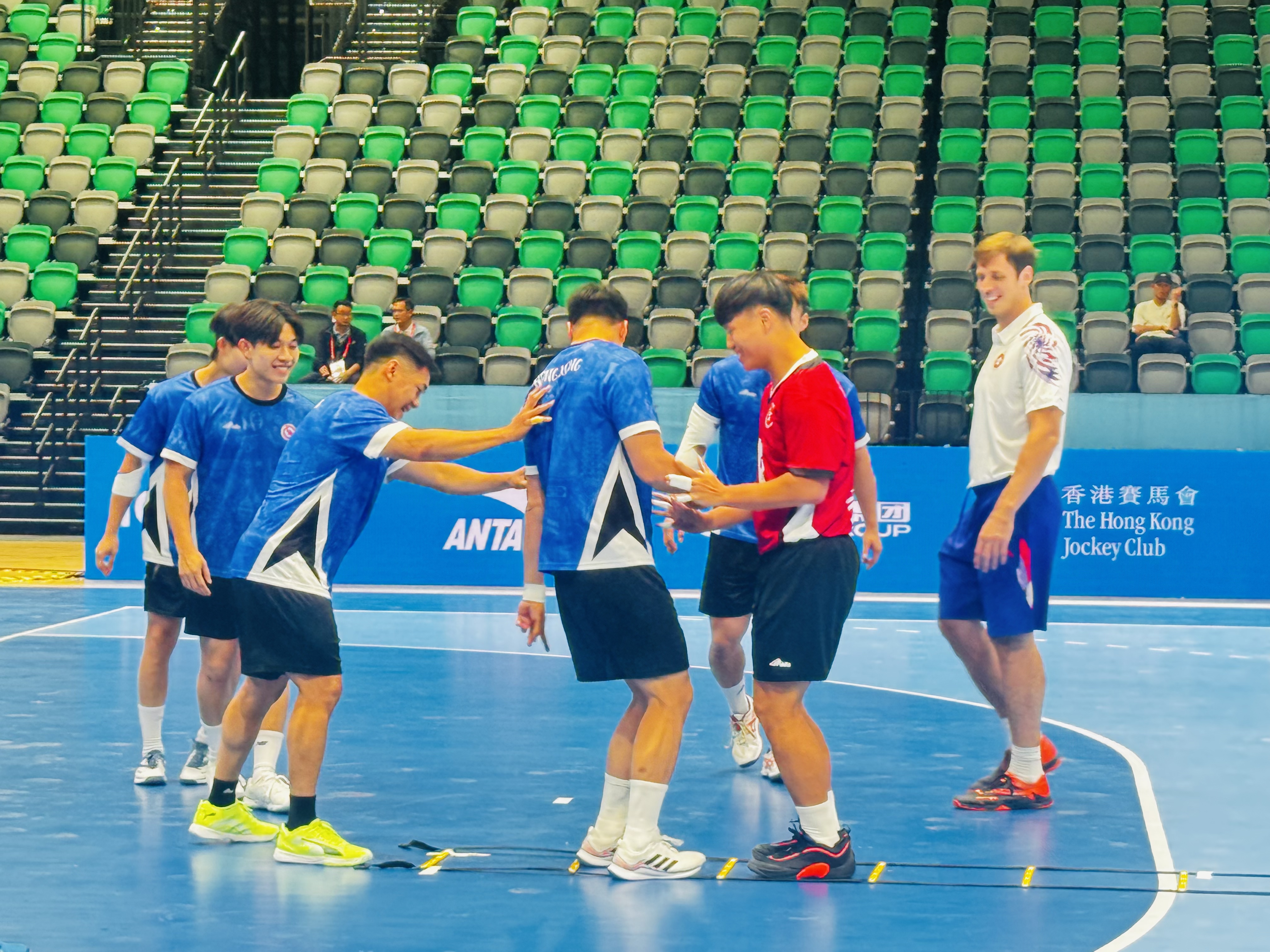 楊德強表示,參與本屆全運會手球項目的10支隊伍已全部抵港,並分批入住酒店。各隊已按計劃前往比賽場館進行適應性訓練,熟悉場地環境。他提到,各隊對啟德體育館的設施反應非常積極,無論是場地地板、燈光、周邊環境,還是更衣室、休息室等配套設施,均表示滿意。