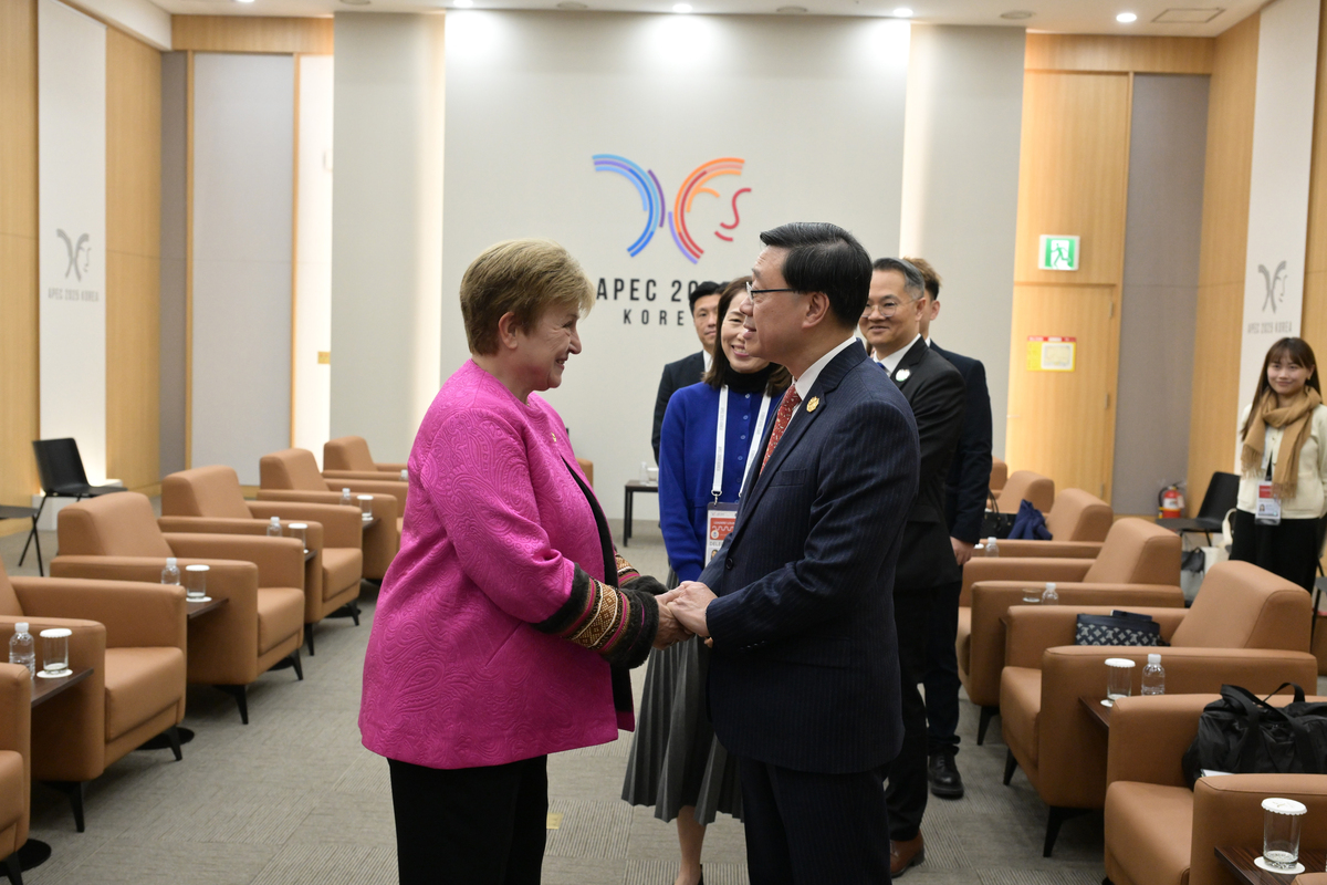 李家超之後與國際貨幣基金組織總裁格奧爾基耶娃會面。他感謝國際貨幣基金組織肯定香港的國際金融中心地位,並認同香港金融體系制度框架穩健、政策緩衝空間充足、聯繫匯率制度暢順運作。
