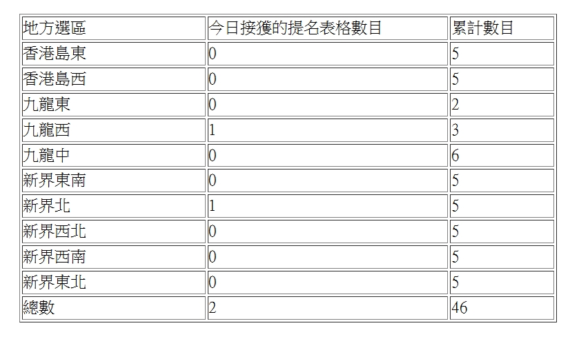 今日接獲的獲提名人士的資料稍後會上載到選舉網站。