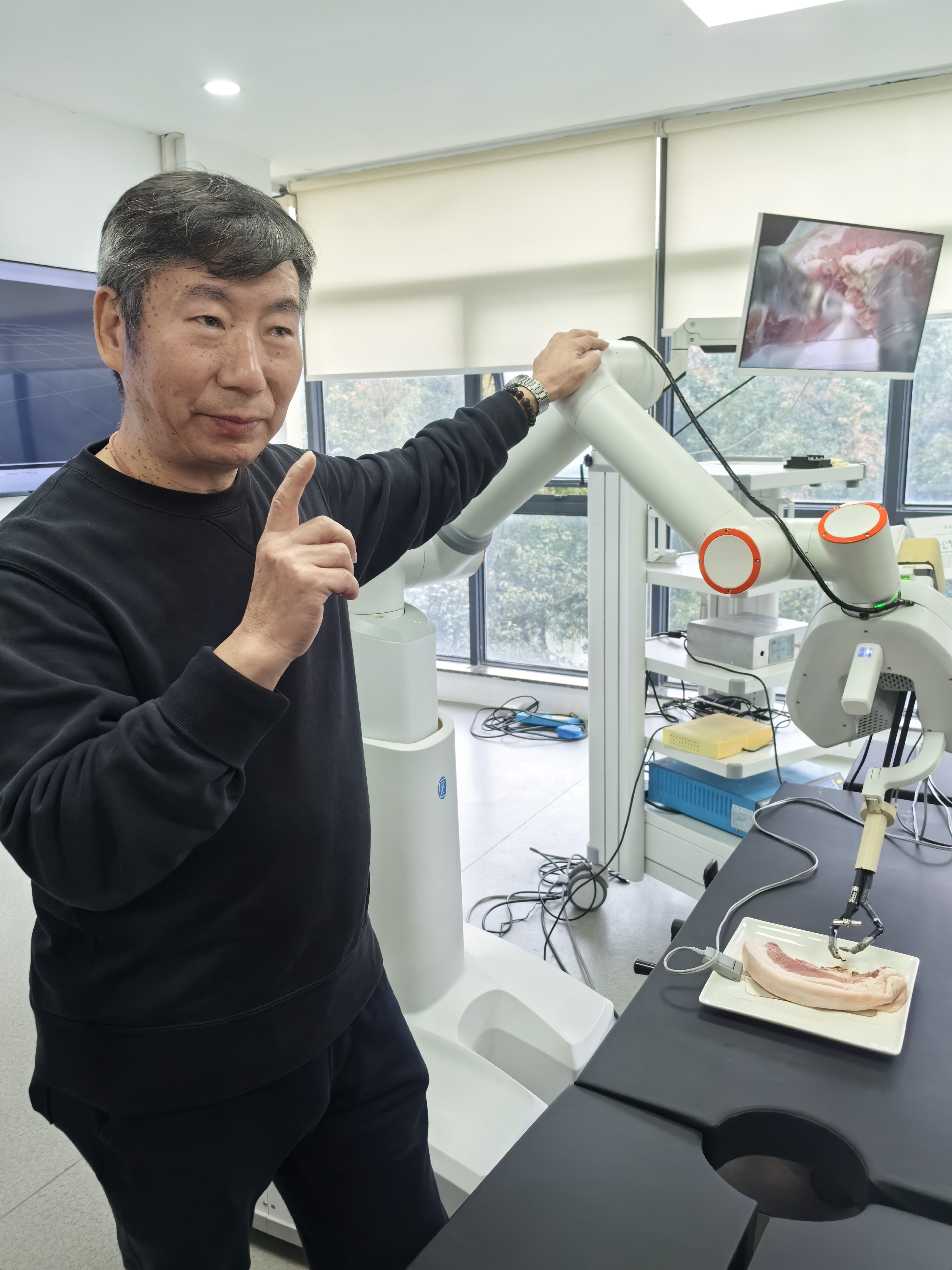 在杭州華匠醫學機器人有限公司實驗室,公司董事長馮再麟向記者展示了企業自主研發的多自由度腹腔鏡手術器械。「這是全球首款實現商業推廣的可彎曲手術器械。」馮再麟介紹說,該系列器械通過應用機器人技術的創新設計,使醫生手中的手術器械更具靈活性優勢,能夠輕鬆應對手術中各類刁鑽角度和高難度操作,有效提升手術效率、縮短手術時間,減少手術後遺症,同時極具經濟性優勢,為擴大微創手術臨床應用範圍,促進醫療資源普惠提供了關鍵支撐。