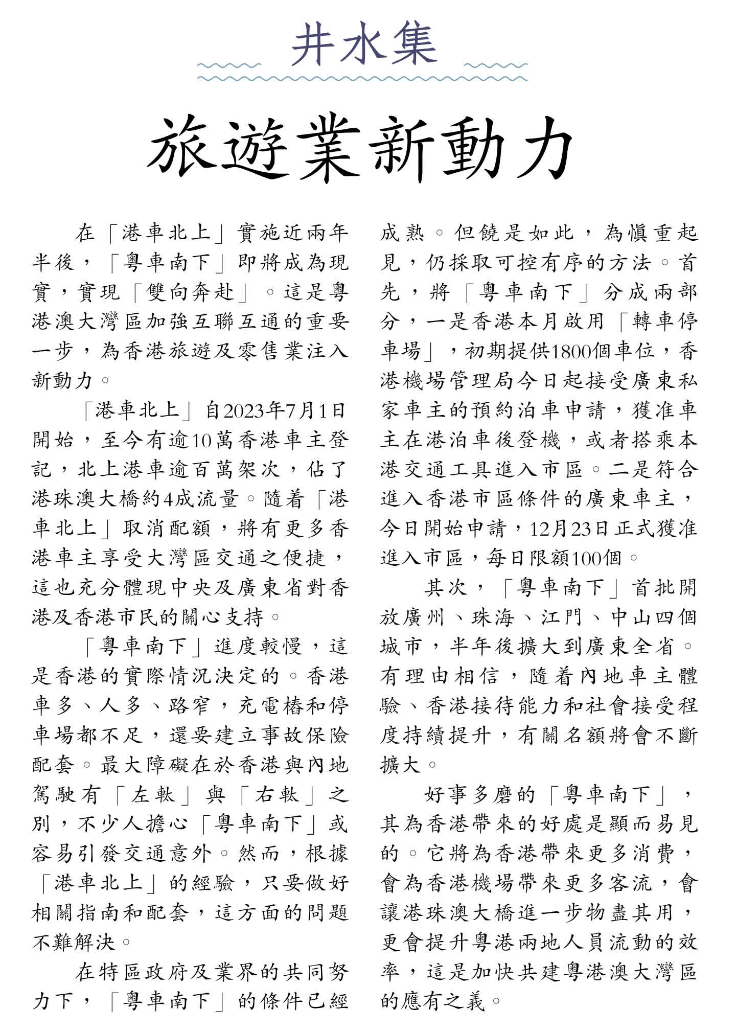 在「港車北上」實施近兩年半後,「粵車南下」即將成為現實,實現「雙向奔赴」。這是粵港澳大灣區加強互聯互通的重要一步,為香港旅遊及零售業注入新動力。
