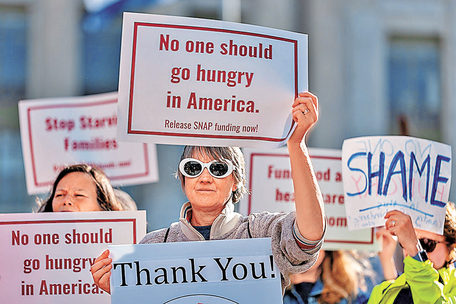 香港文匯報報道,美國聯邦政府自今年10月1日起至今已停擺一個月,民主黨主政的紐約州和馬里蘭州政府周四(10月30日)宣布,由於幫助低收入民眾購買食品雜貨的「補充營養援助計劃」(SNAP)資金本周末耗盡,兩州已進入緊急狀態。民主黨人普遍指責總統特朗普以中斷SNAP資金施壓,試圖迫使民主黨妥協,接受共和黨的臨時開支方案,令4,200萬民眾面臨斷糧風險。