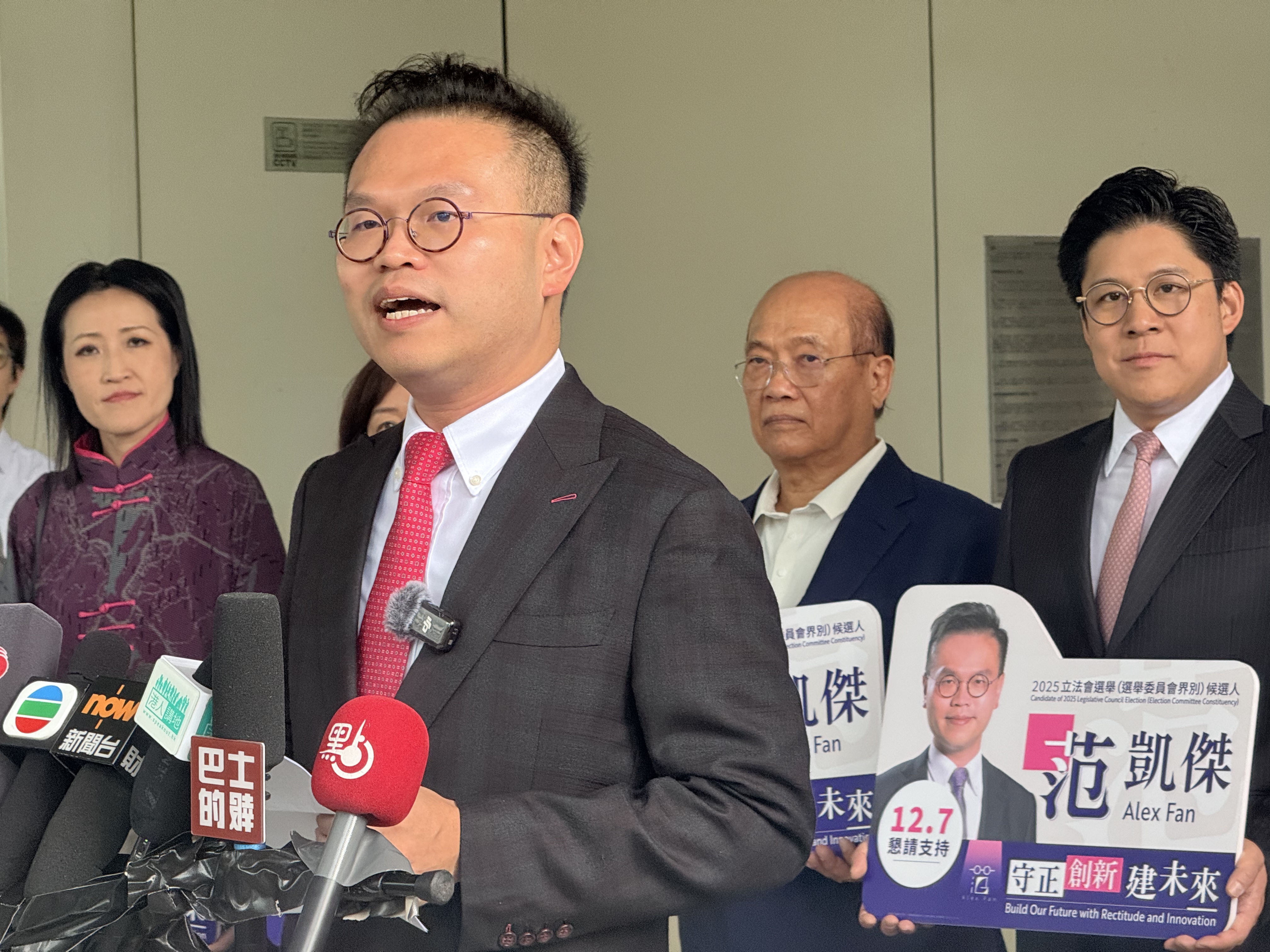 全國政協委員范駿華正式宣布參選選委會界別,前立法會主席范徐麗泰以母親身份到場支持。范駿華表示,當前科技發展日新月異,未來諸多新挑戰都要求中小企業積極適應變革、推動創新,自己作為會計師高度關注香港經濟發展,並期望藉助自身專業經驗,助力中小企業實現技術升級與轉型。